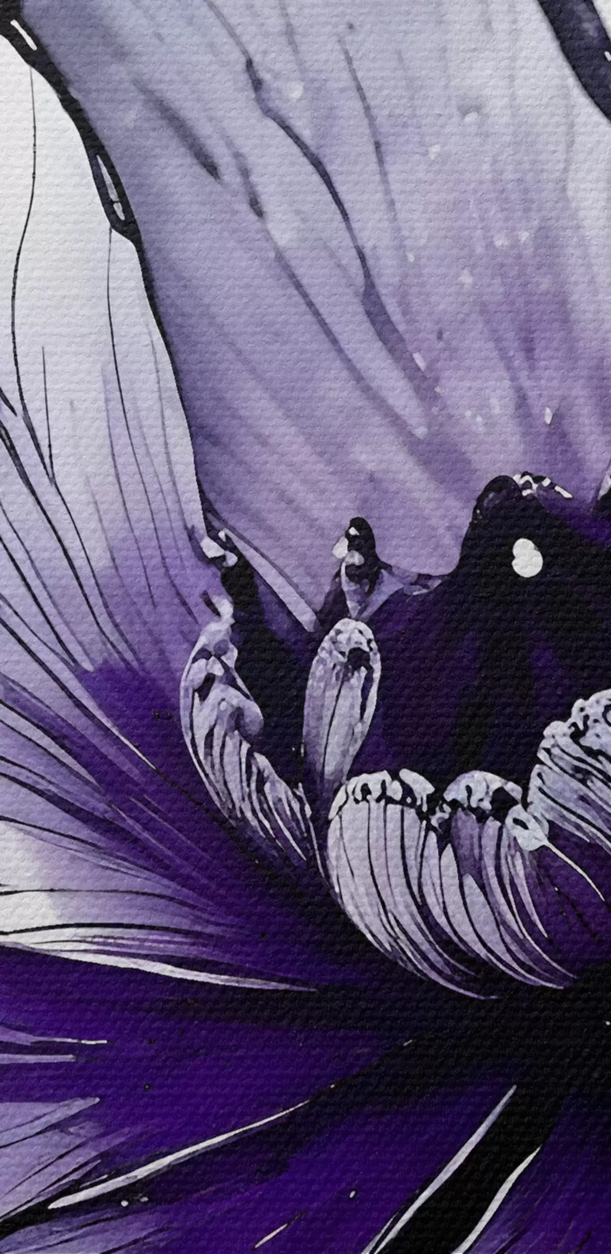 Picturi rotunde O floare mare, violet vibrant, cu petale delicate, complicate, pe un fundal închis Nr r38982