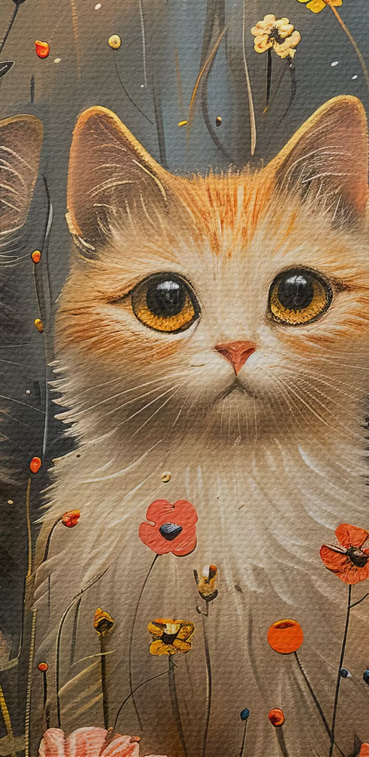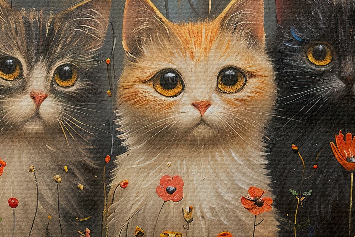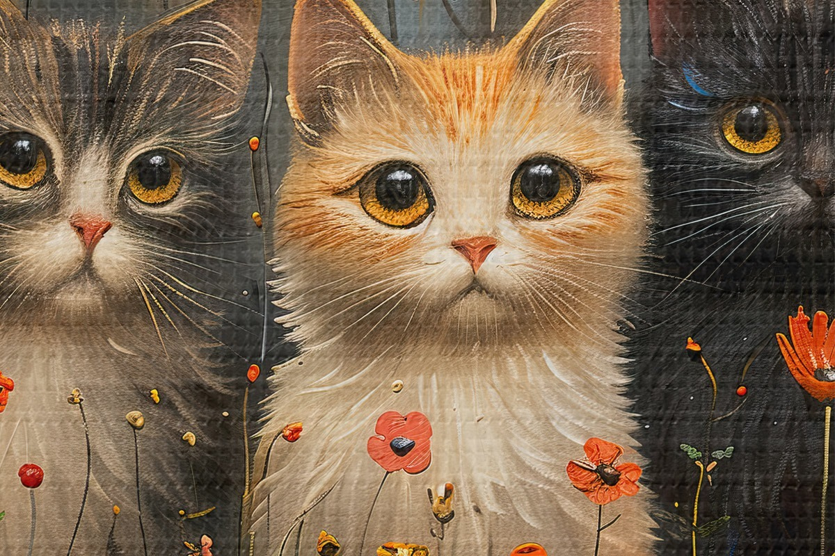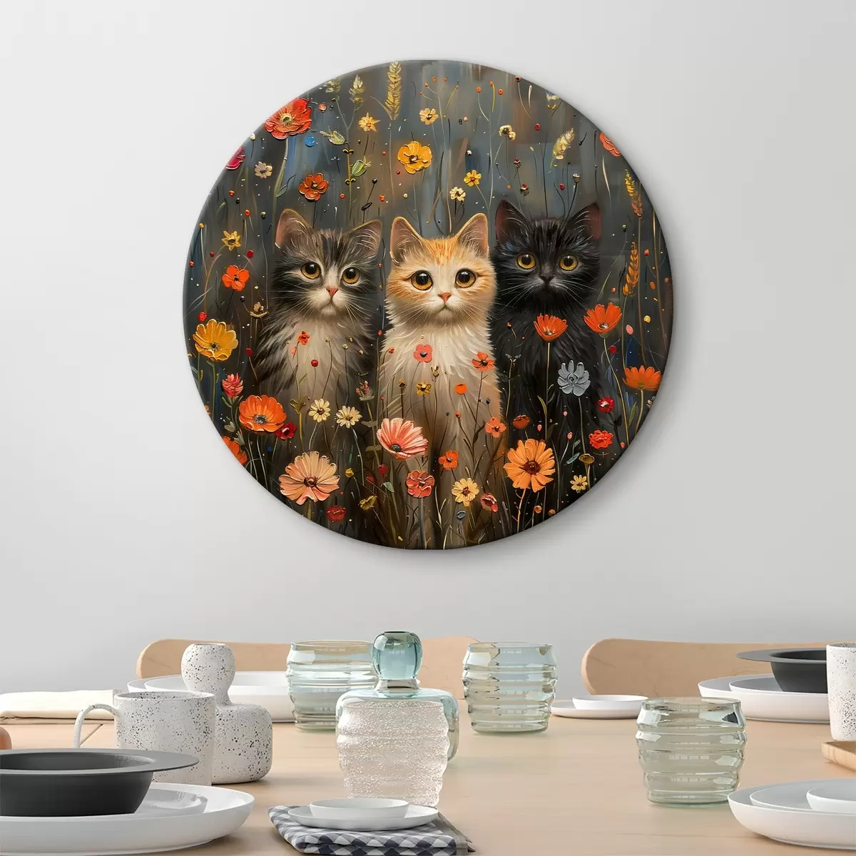 Picturi rotunde Trei pisici în flori sălbatice Nr r39012
