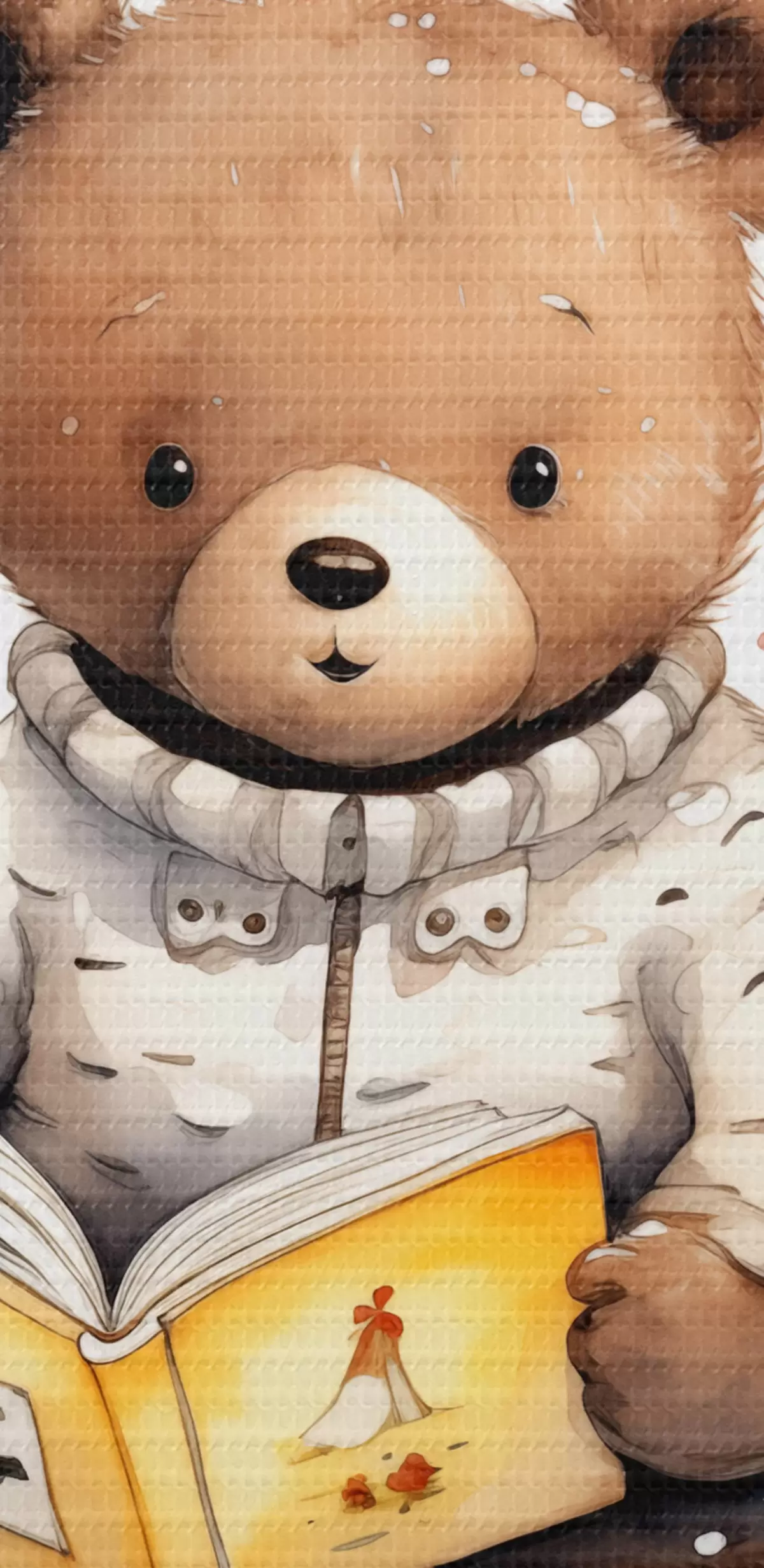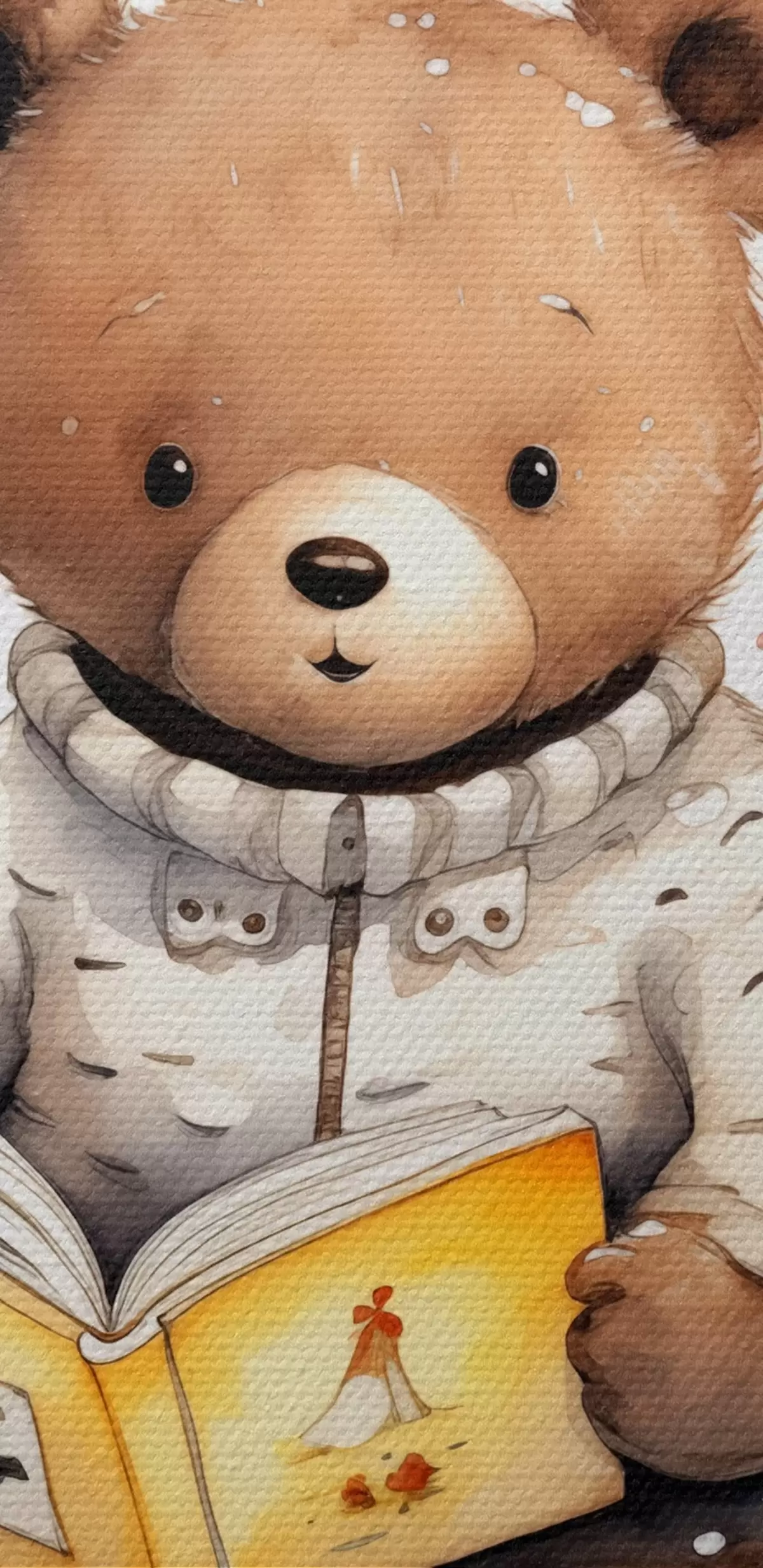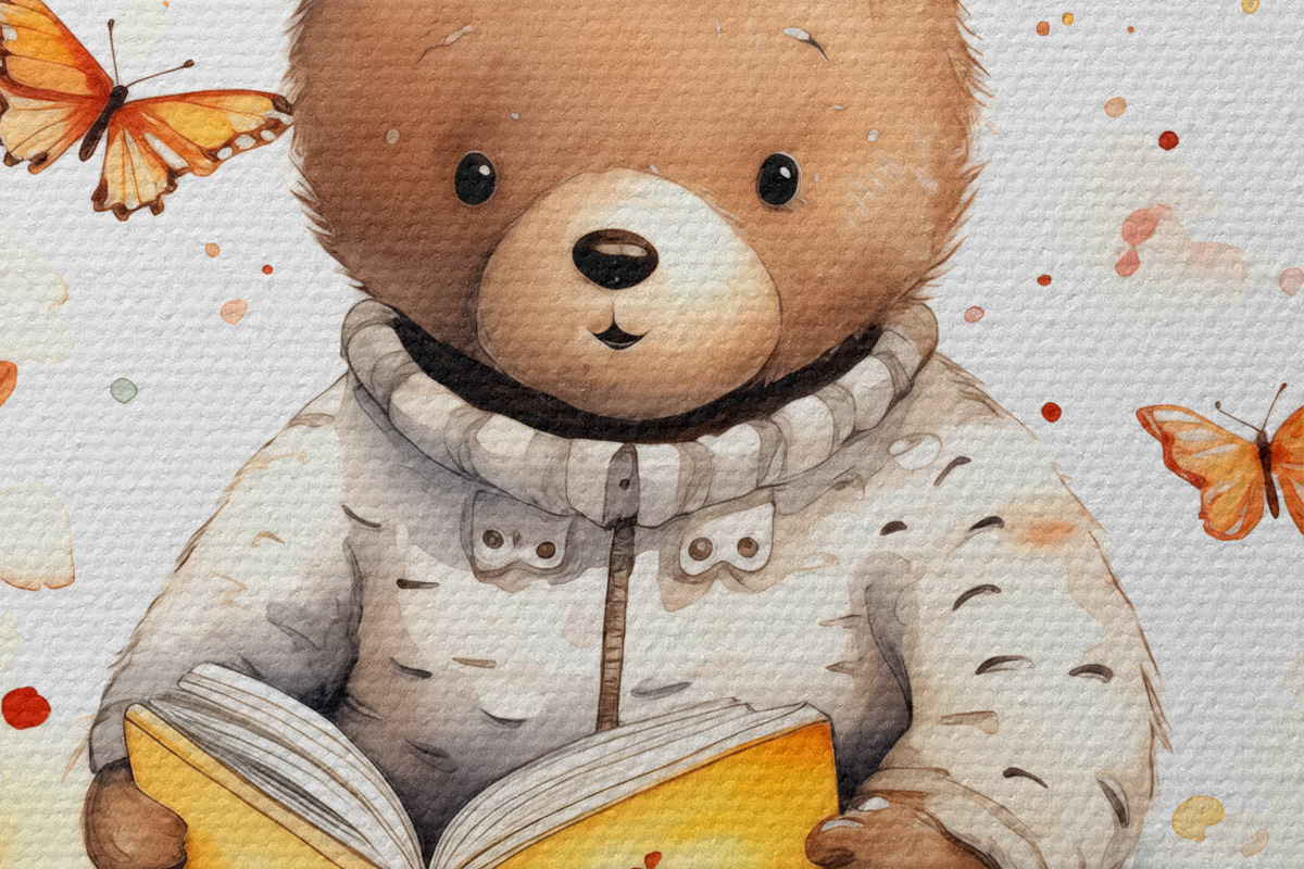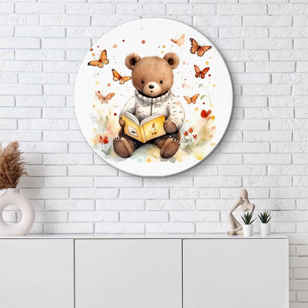Picturi rotunde Pui de urs brun într-un pulover citește o carte înconjurat de fluturi acuarelă Nr r39025