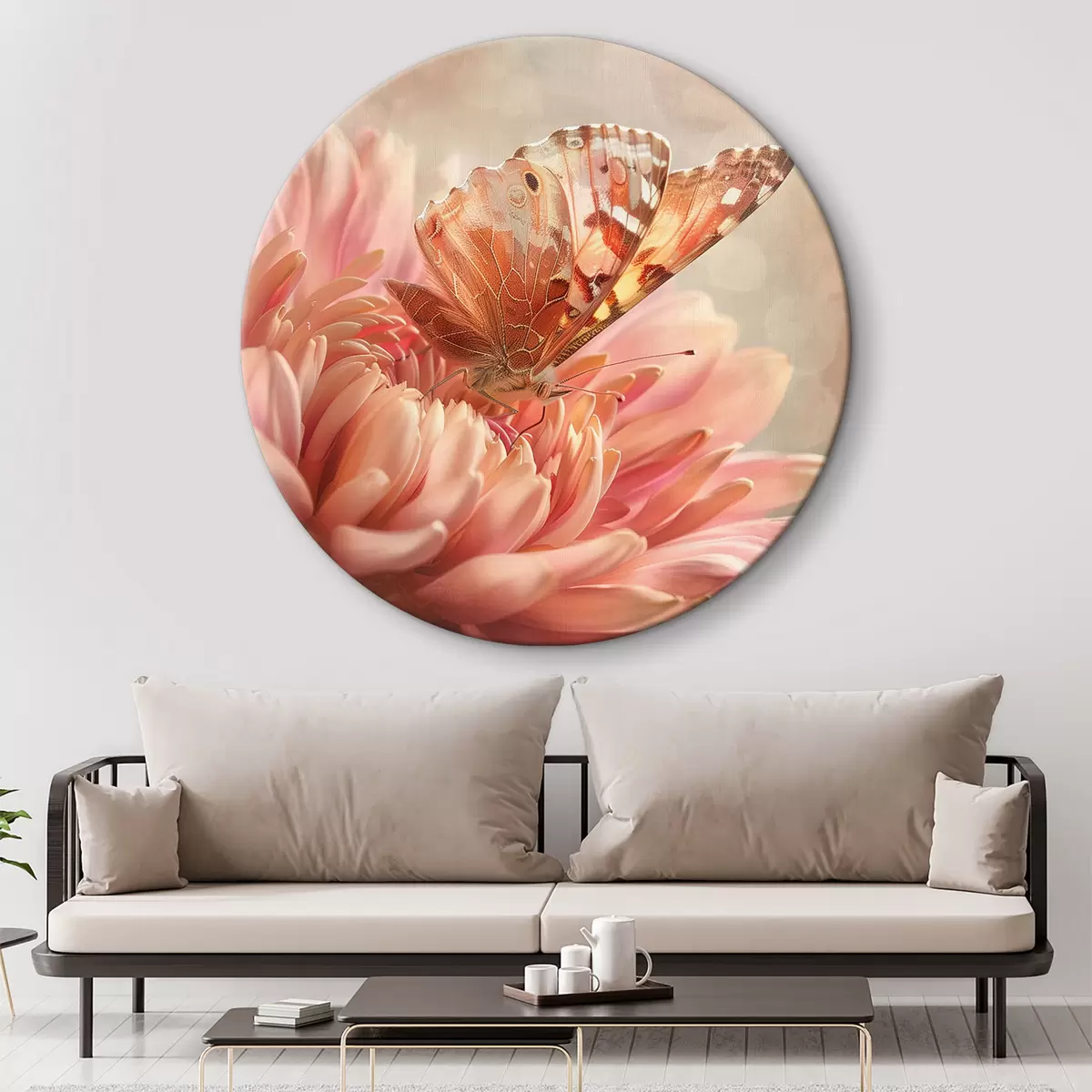 Picturi rotunde Fluture pe un boboc de floare mare Nr r39071