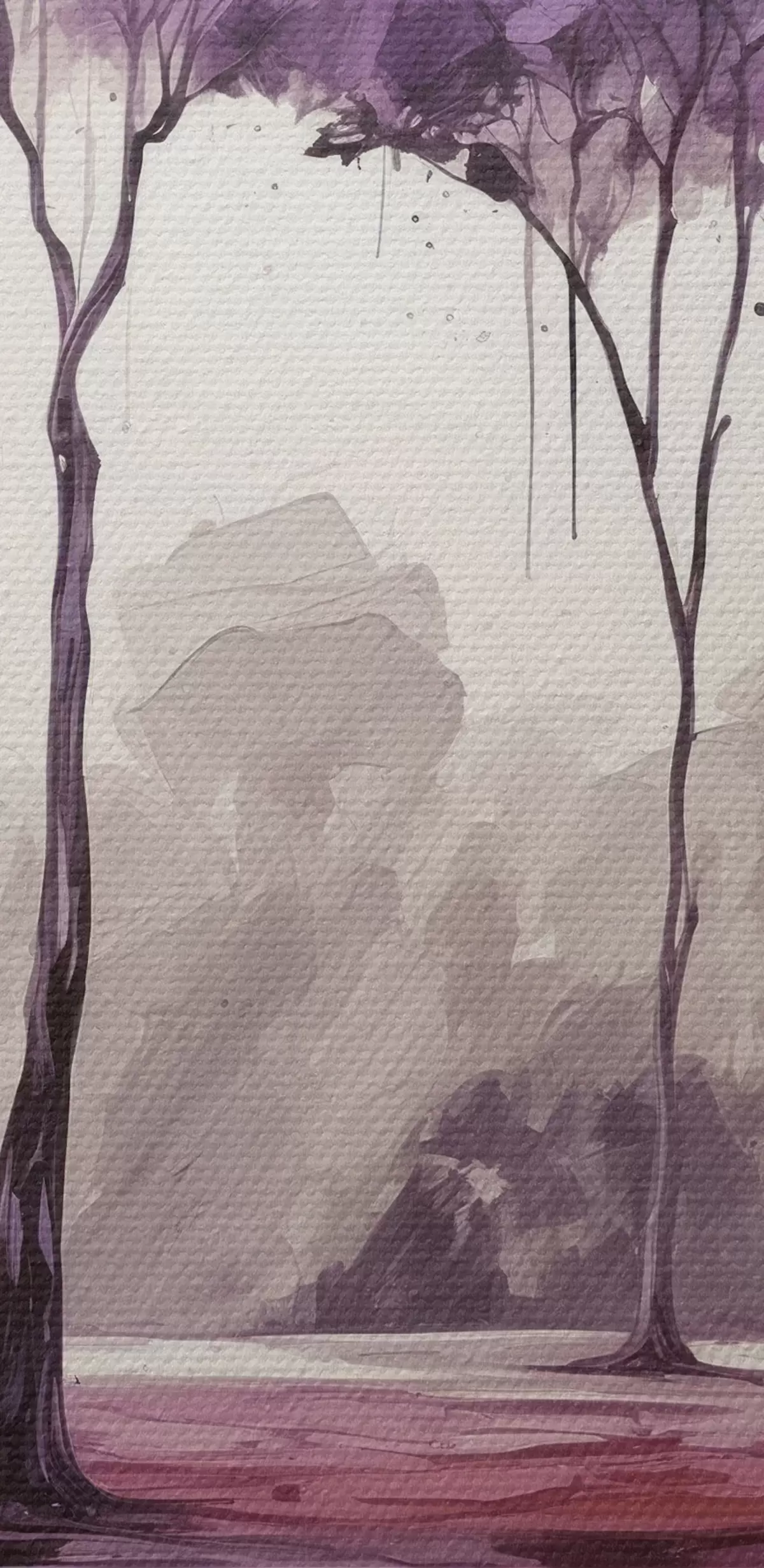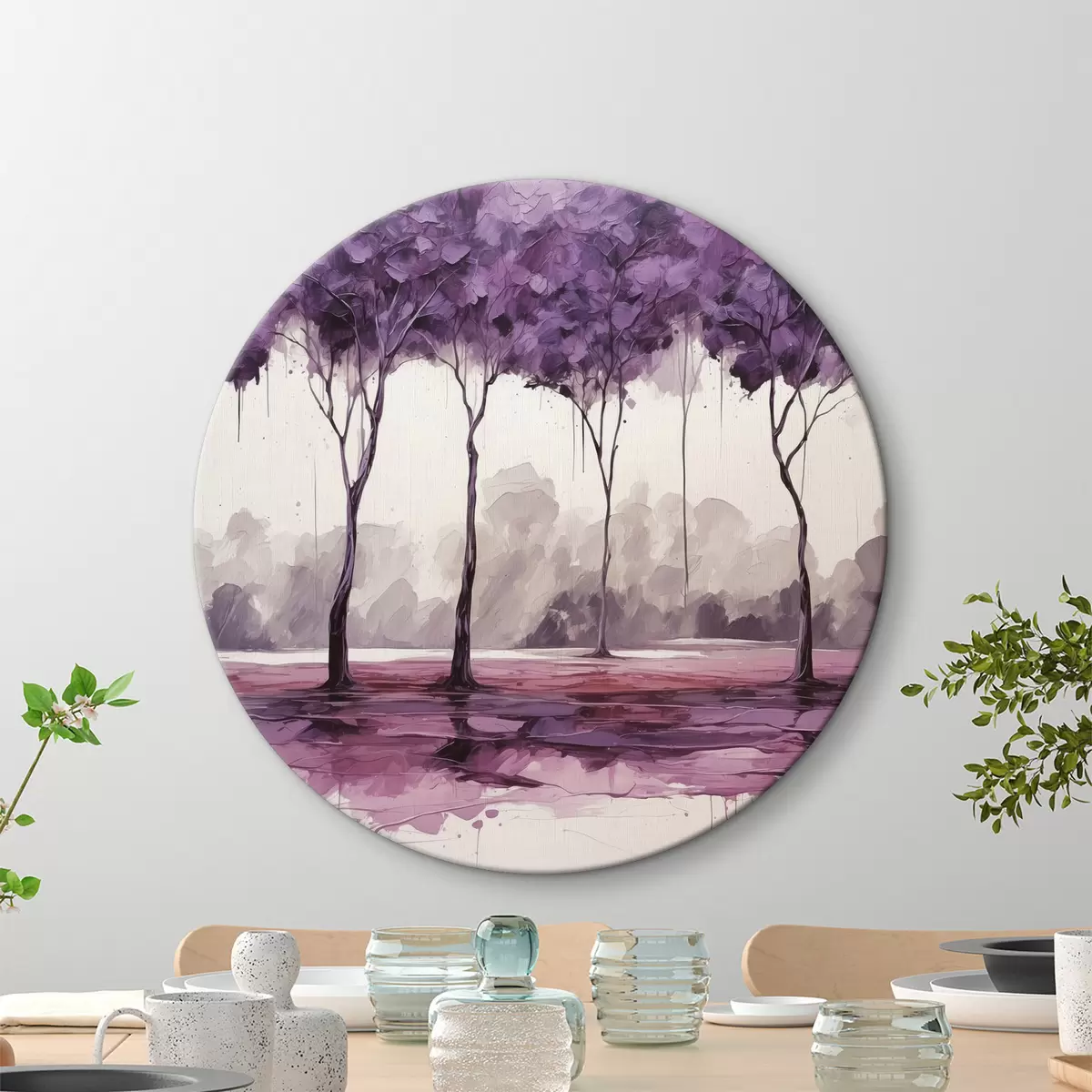 Picturi rotunde Copaci cu frunze violet pe fundal abstract Nr r39155