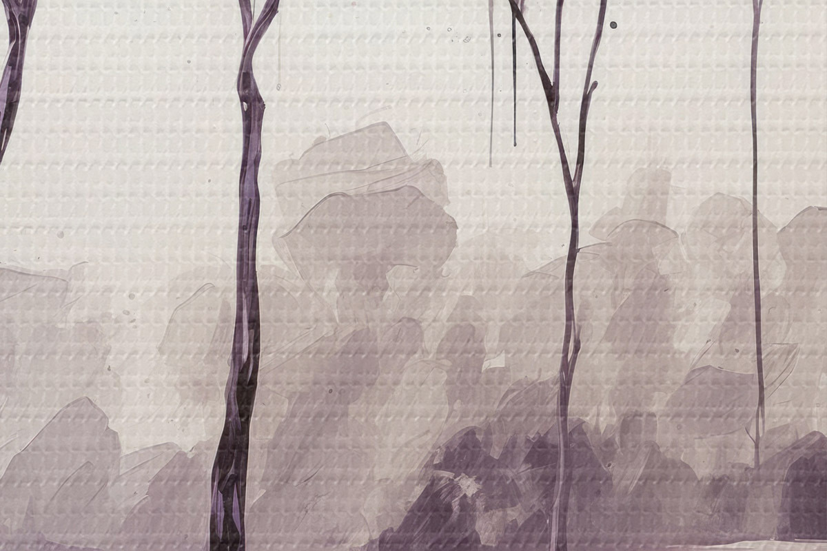 Picturi rotunde Copaci cu frunze violet pe fundal abstract r39155