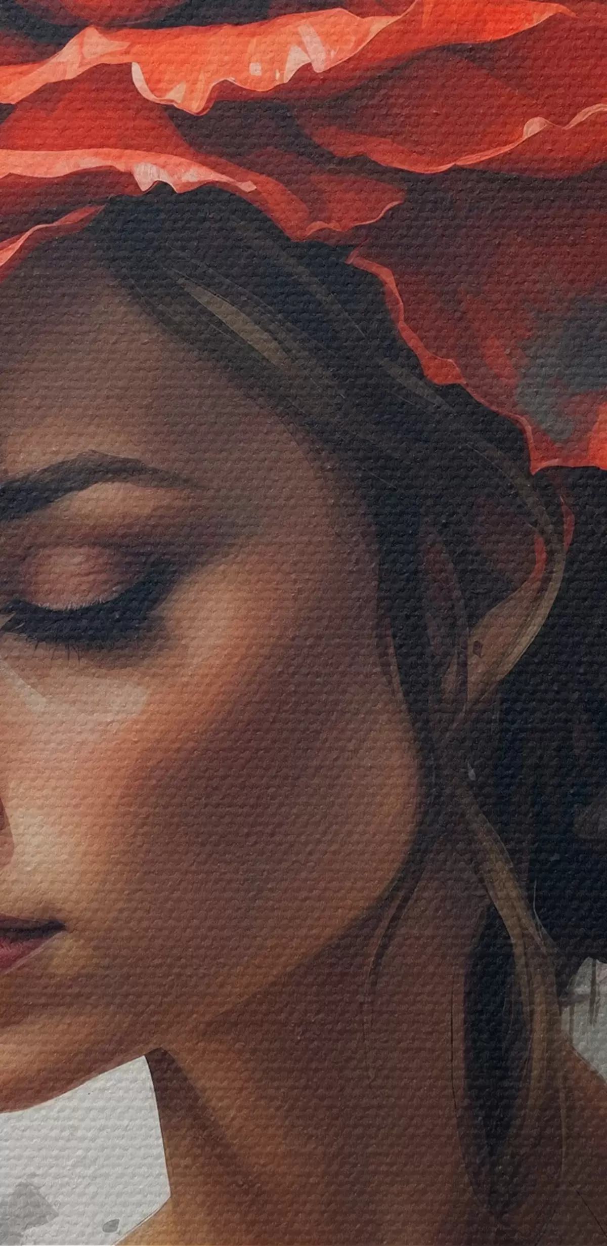 Țesătura fină a firelor de pe această pânză seamănă cu suprafața pânzelor artiștilor profesioniști.