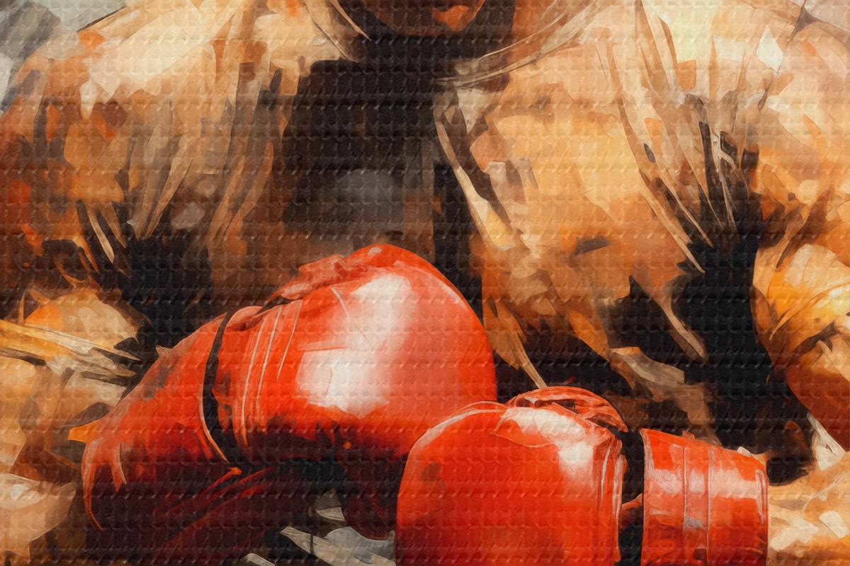 Picturi rotunde Boxer în mănuși roșii pictură în ulei r39180