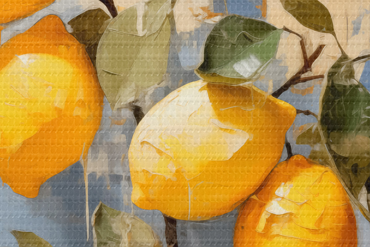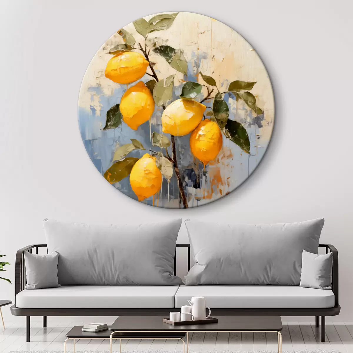 Picturi rotunde Creangă cu lămâi coapte pictură în ulei artă abstractă, galben, albastru și verde culoare r39186