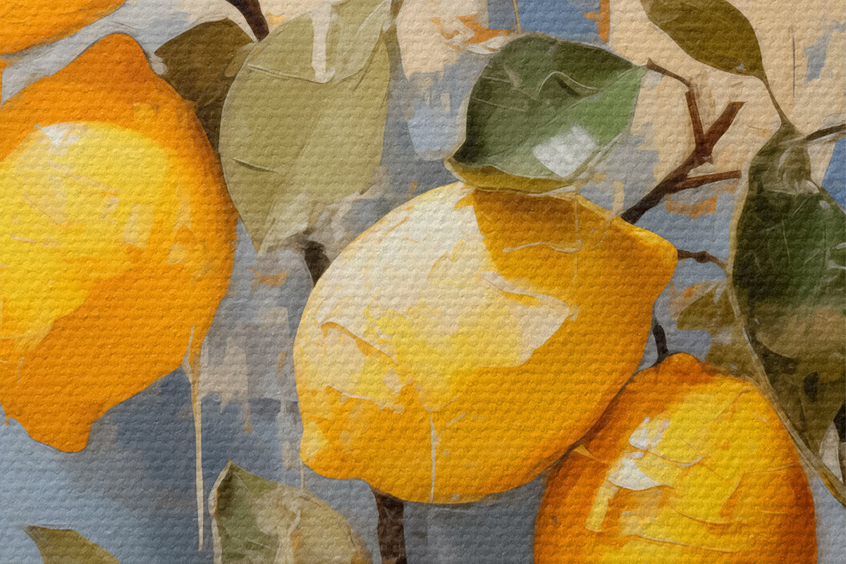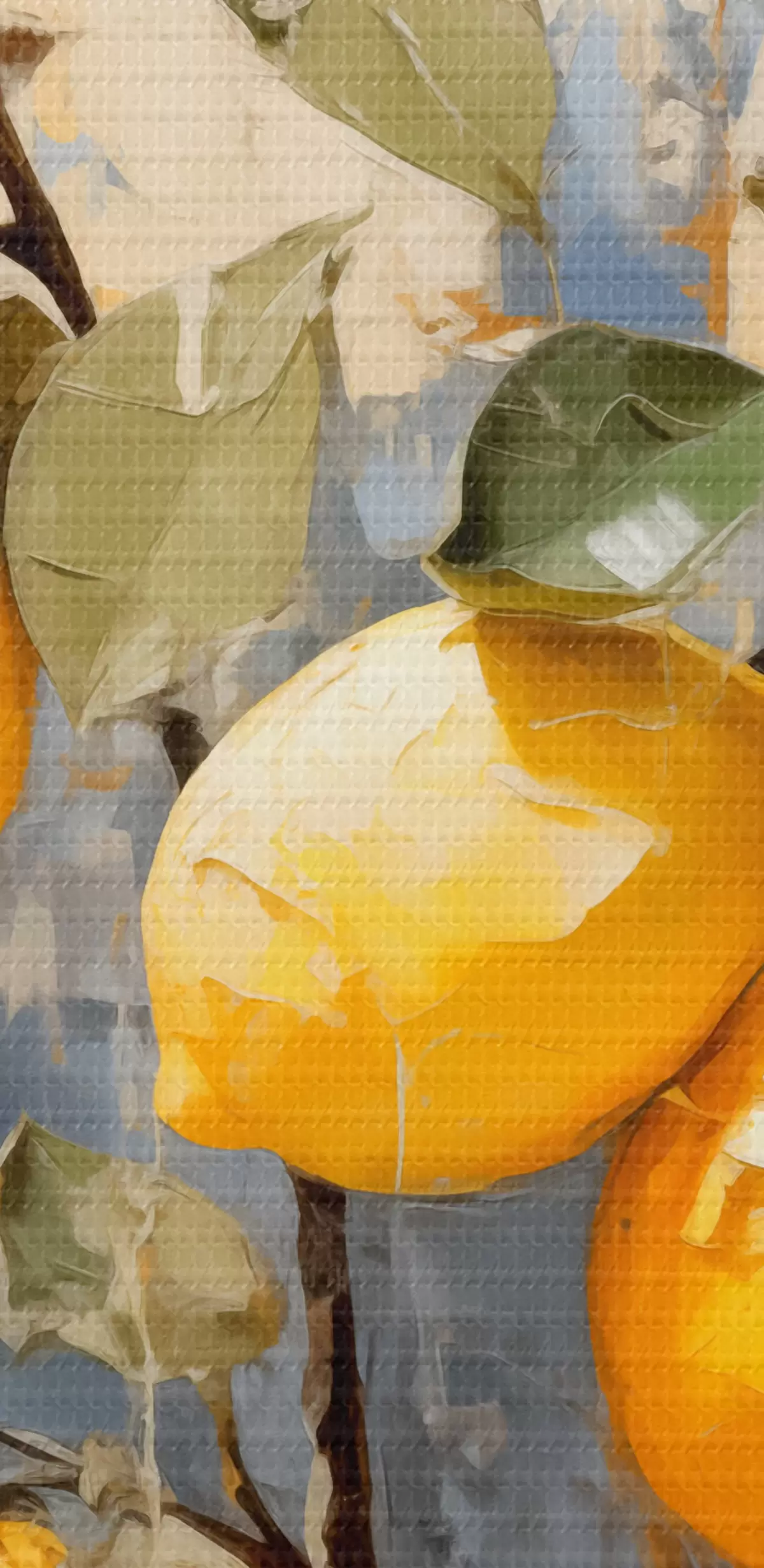 Picturi rotunde Creangă cu lămâi coapte pictură în ulei artă abstractă, galben, albastru și verde culoare Nr r39186