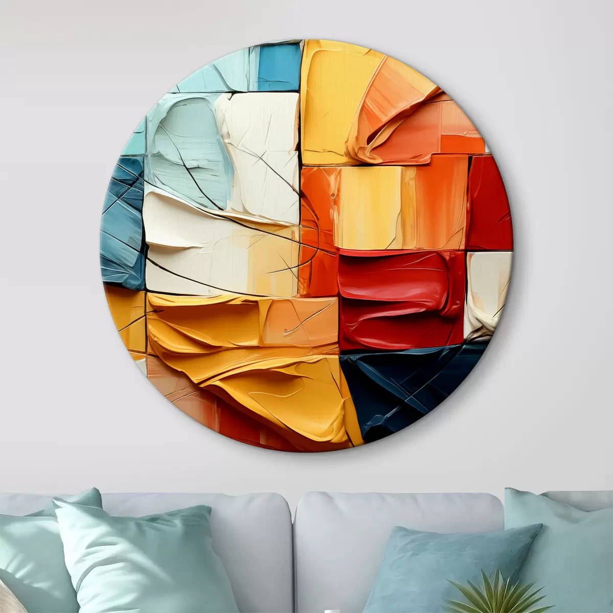 Picturi rotunde Bucăți de vopsea strălucitoare cu fisuri, pătrate, pictură cubistă Nr r39196