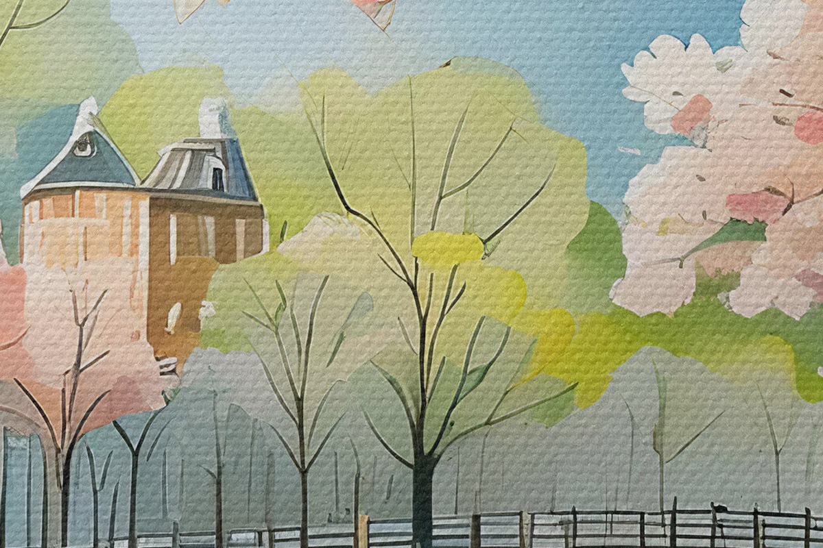 Picturi rotunde copaci înfloriți primăvara în Amsterdam r39301