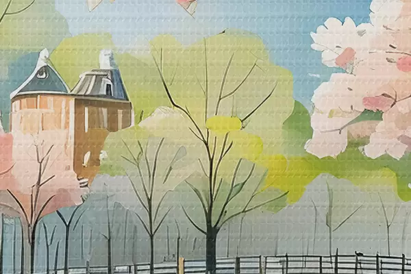 Picturi rotunde copaci înfloriți primăvara în Amsterdam r39301