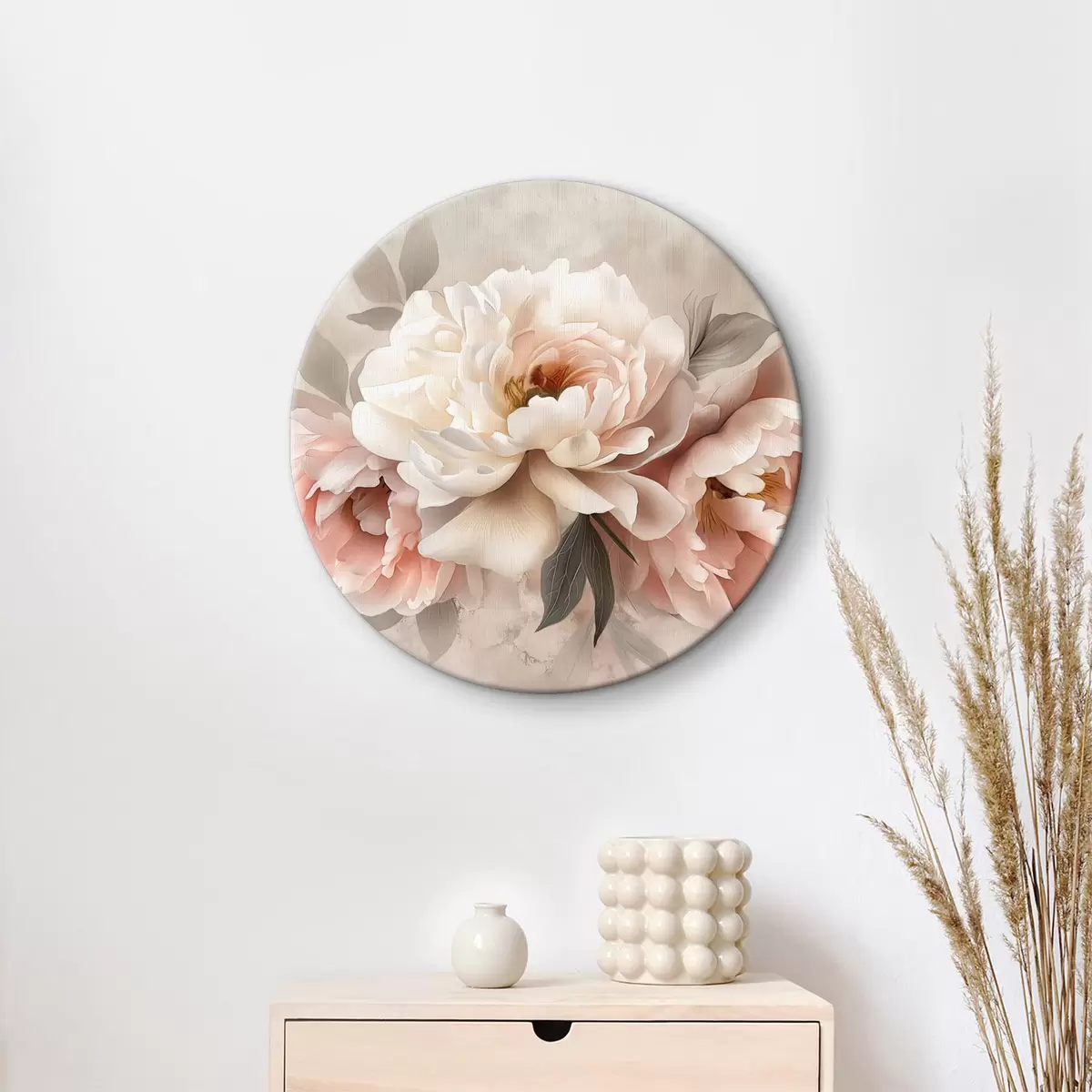 Picturi rotunde buchet abstract de bujori în tonuri roz r39324