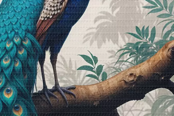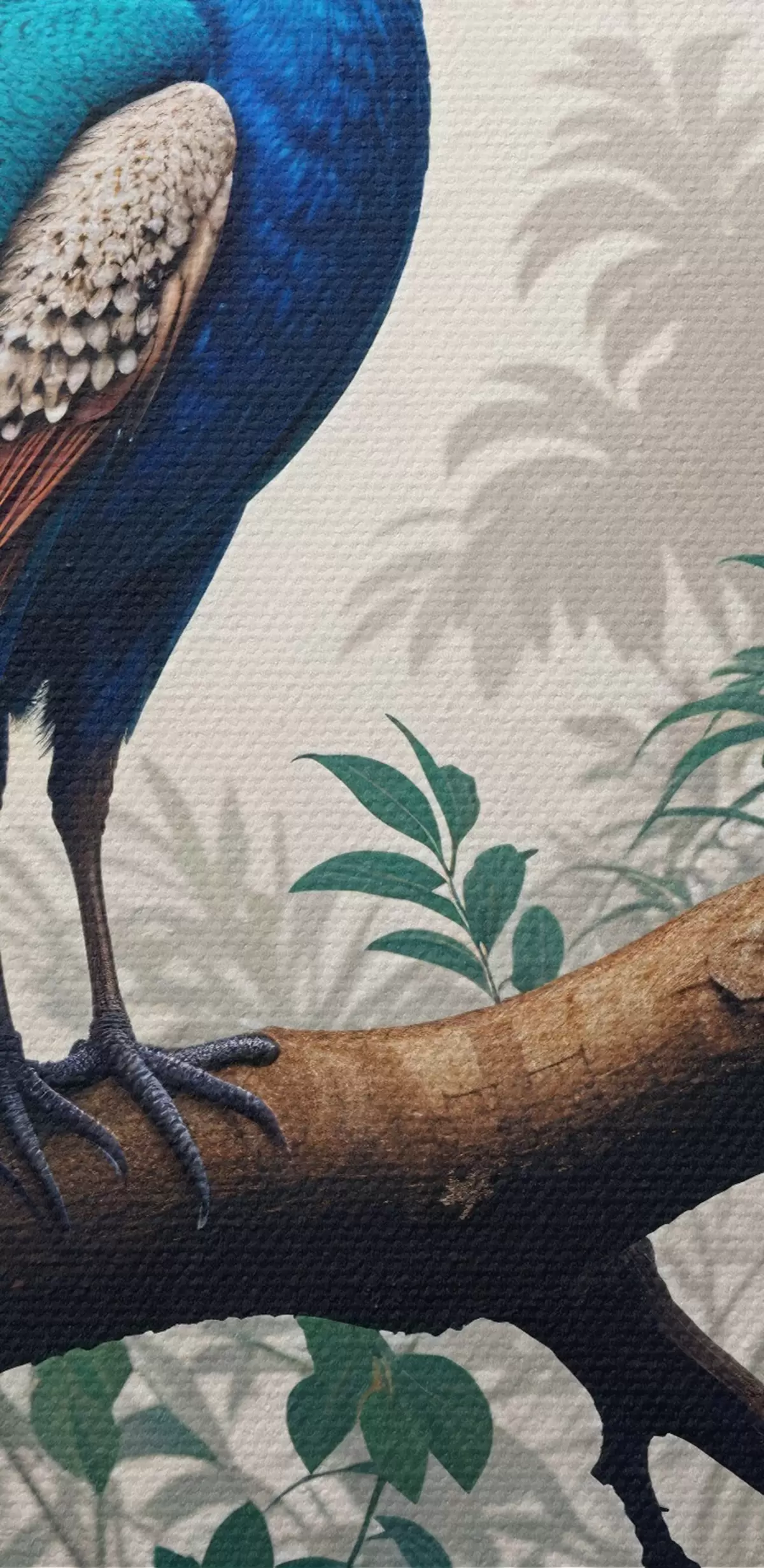 Picturi rotunde Un păun albastru vibrant cocoțat pe o ramură de copac într-o pădure tropicală luxuriantă Nr r39401