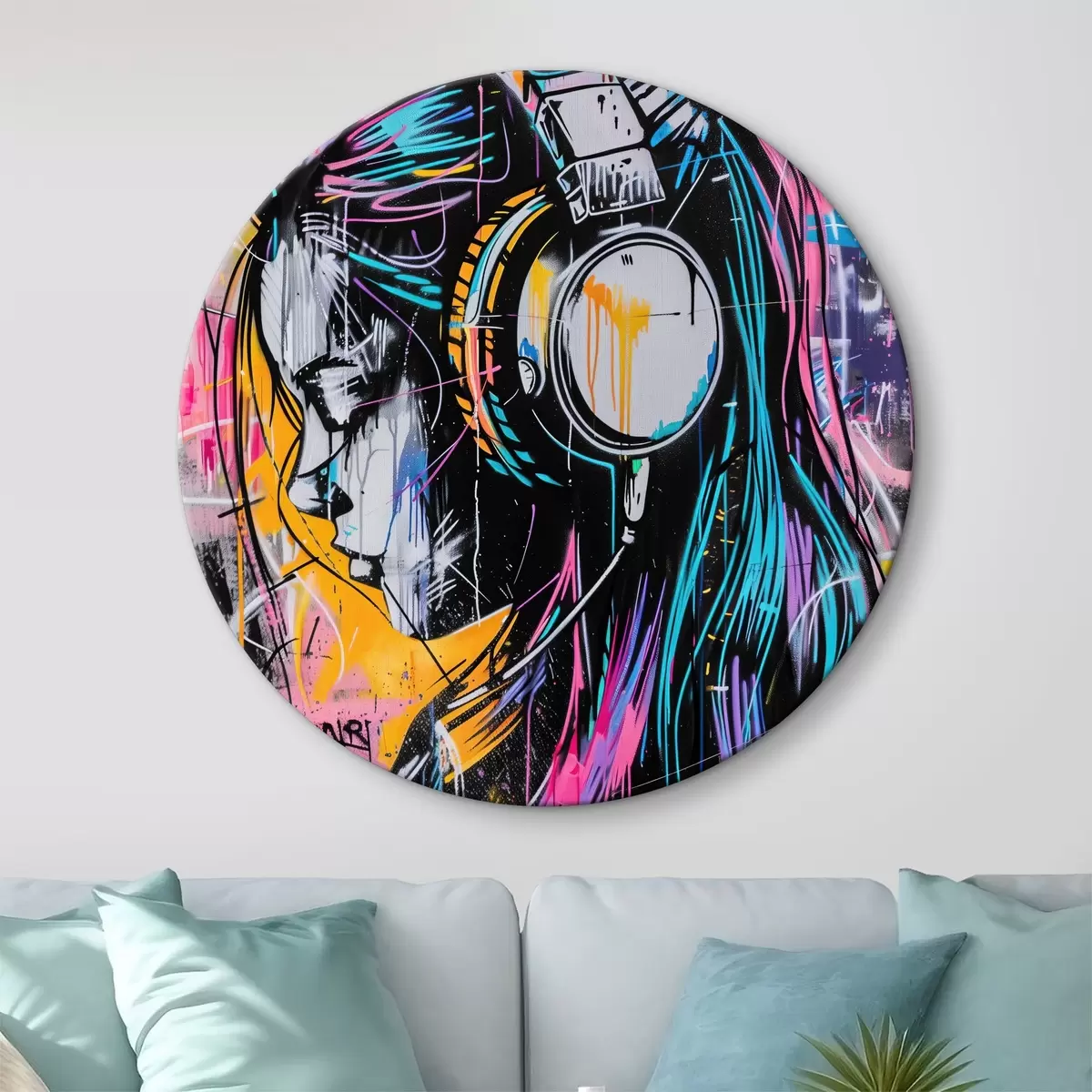 Picturi rotunde Femeie cu căști în stil graffiti r39443