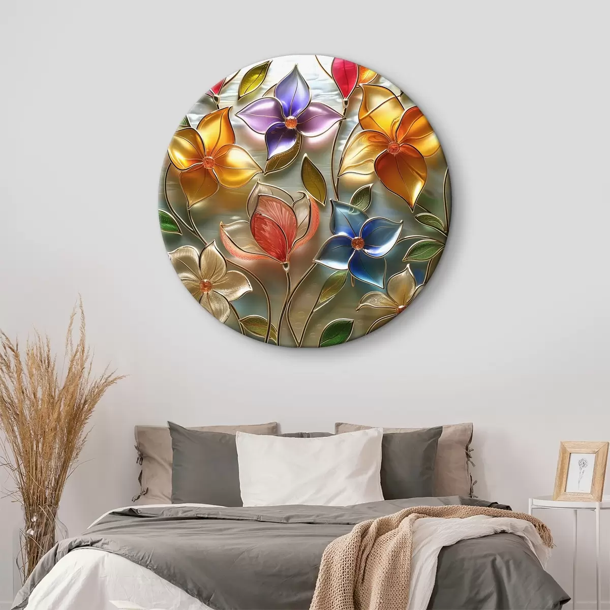 Picturi rotunde Orhidee din vitralii care strălucesc în soare Nr r39447