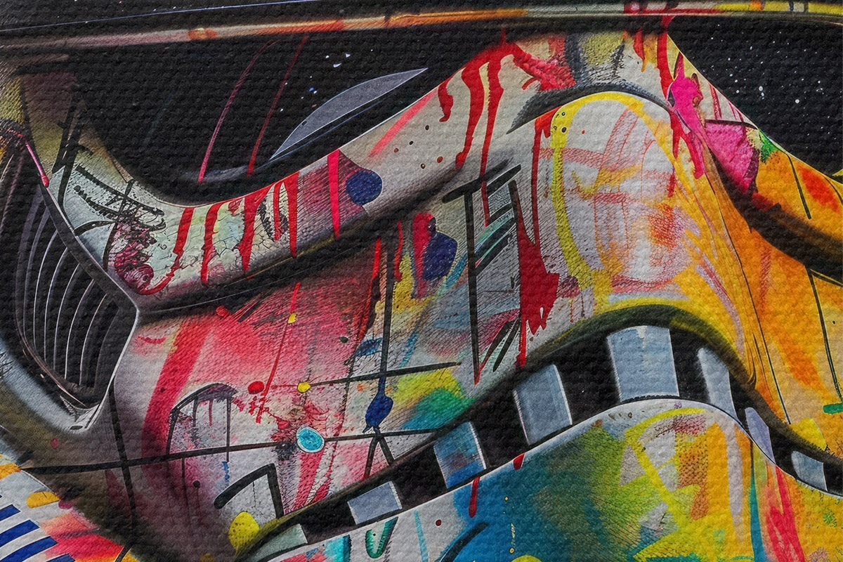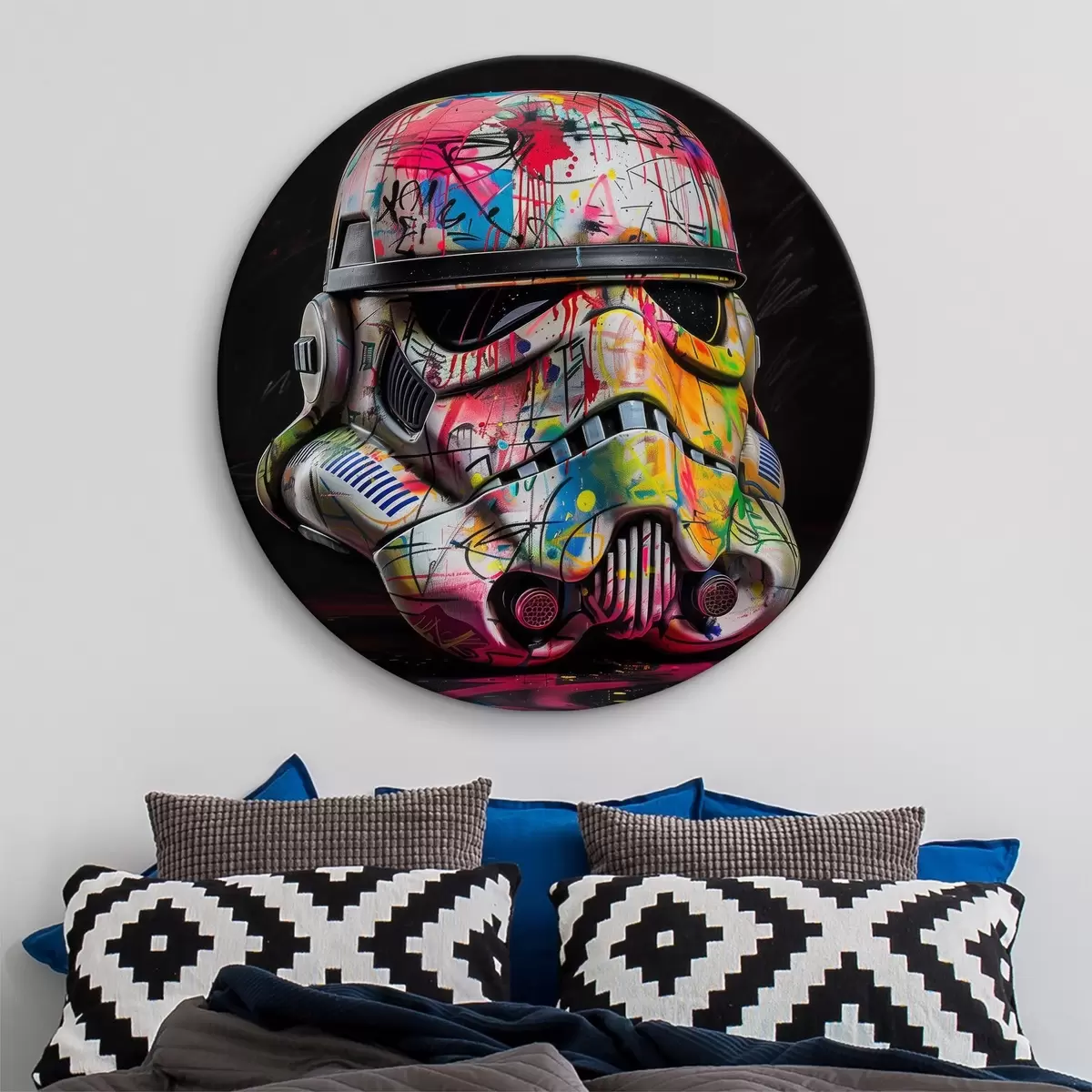 Picturi rotunde O cască Stormtrooper din Războiul Stelelor acoperită cu artă stradală vibrantă și graffiti Nr r39453