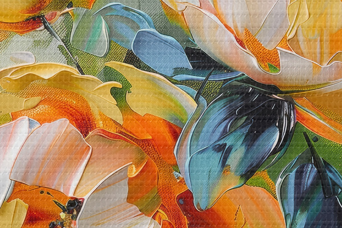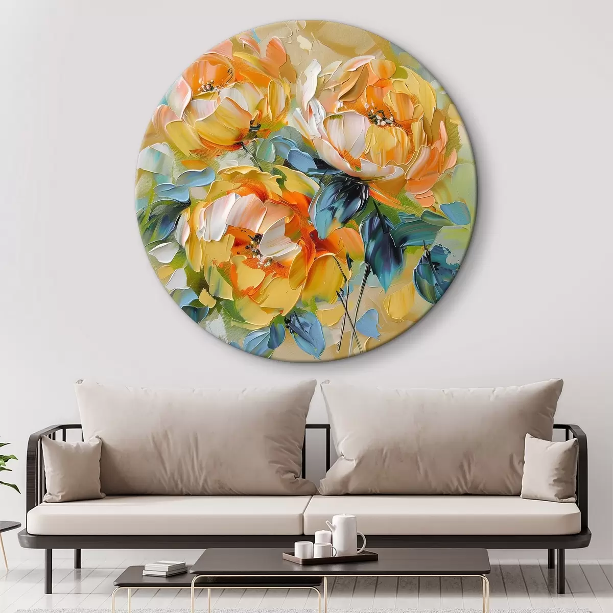 Picturi rotunde Flori vibrante cu texturi bogate într-o compoziție abstractă colorată Nr r39460