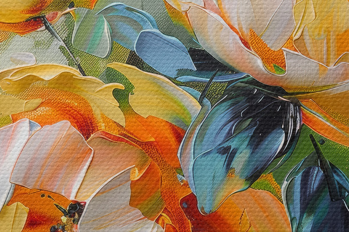 Trei tipuri de materiale sunt disponibile pentru comandă: Economic Canvas - un material dens și durabil pentru imprimarea digitală, identic cu pânza de pictor, suprafață impermeabilă, reproducere realistă a detaliilor, material cu granulație medie. Premium Canvas - textura seamănă cu cea a pânzei unui pictor (fire mici împletite). Reproducere moale, detaliată a imaginii pe o suprafață mată. Eco-Premium - țesătură 100% bumbac de înaltă calitate. Datorită fibrelor naturale de bumbac, materialul este durabil și rezistent la uzură. Reproducere excelentă a culorilor și a detaliilor.