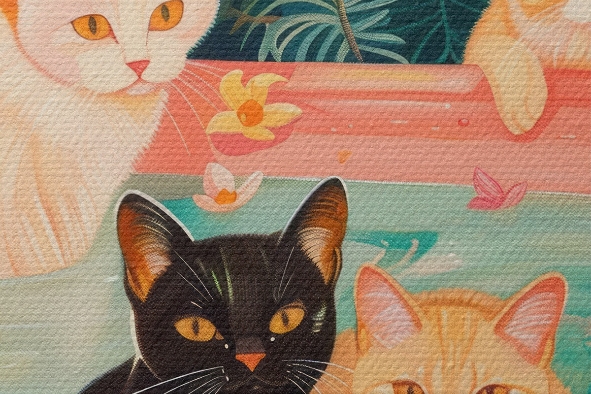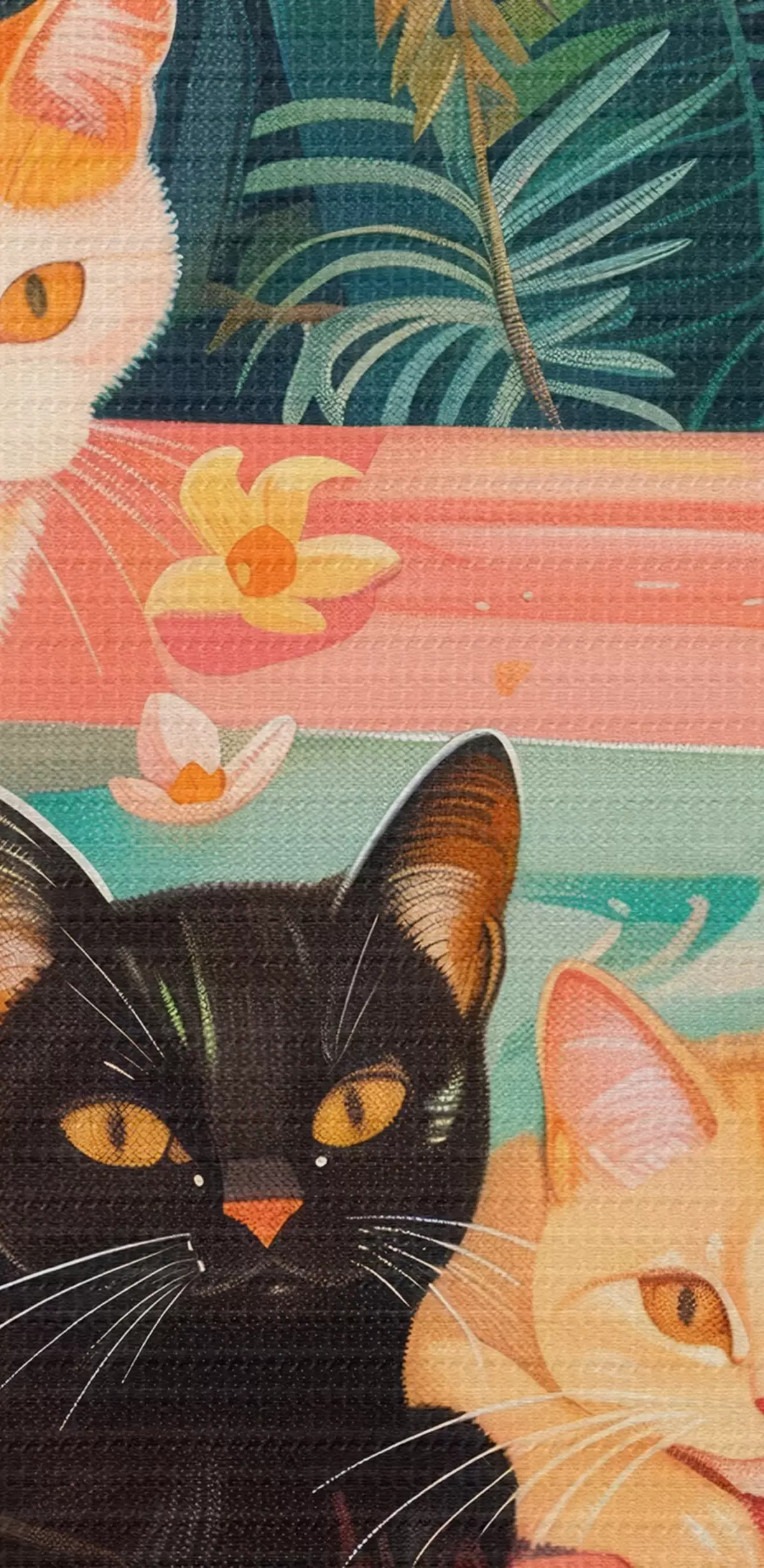 Picturi rotunde Pisici într-o baie roz cu frunze verzi, atmosferă de junglă r39465