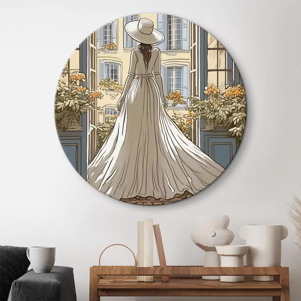 Picturi rotunde silueta unei fete într-o rochie albă lângă fereastră Nr r39479