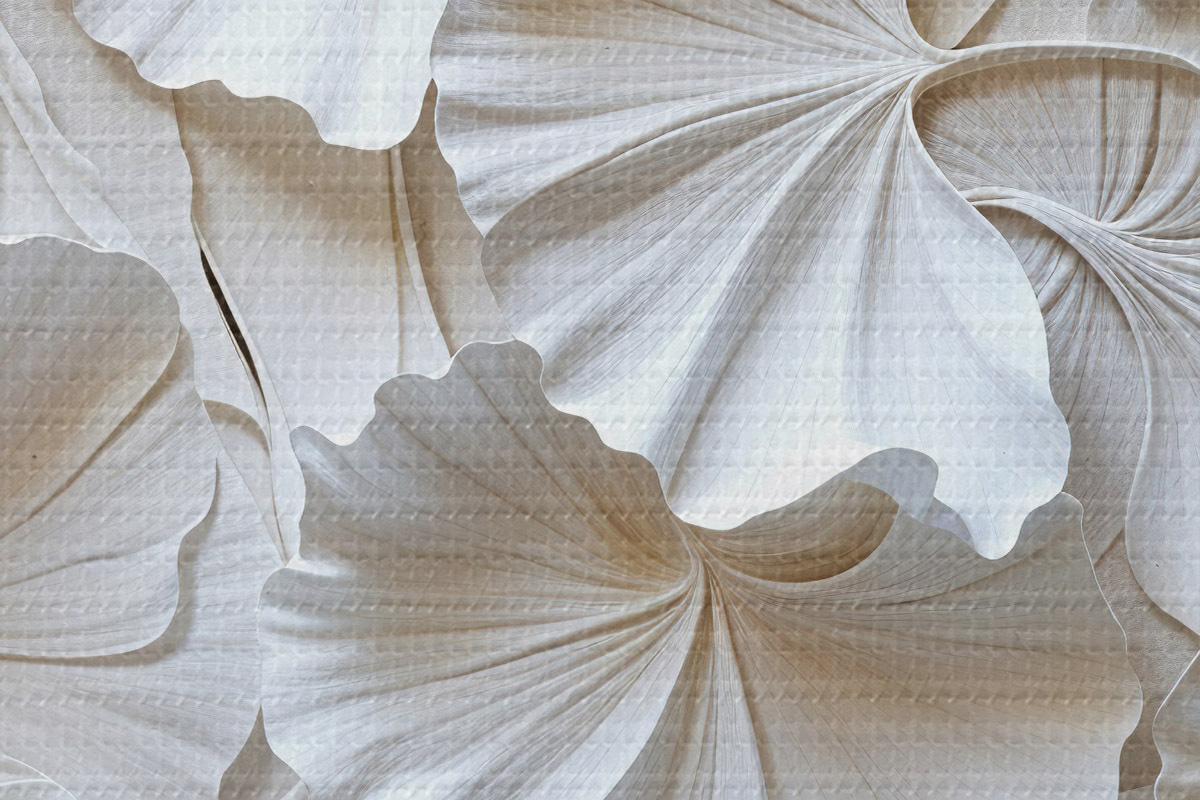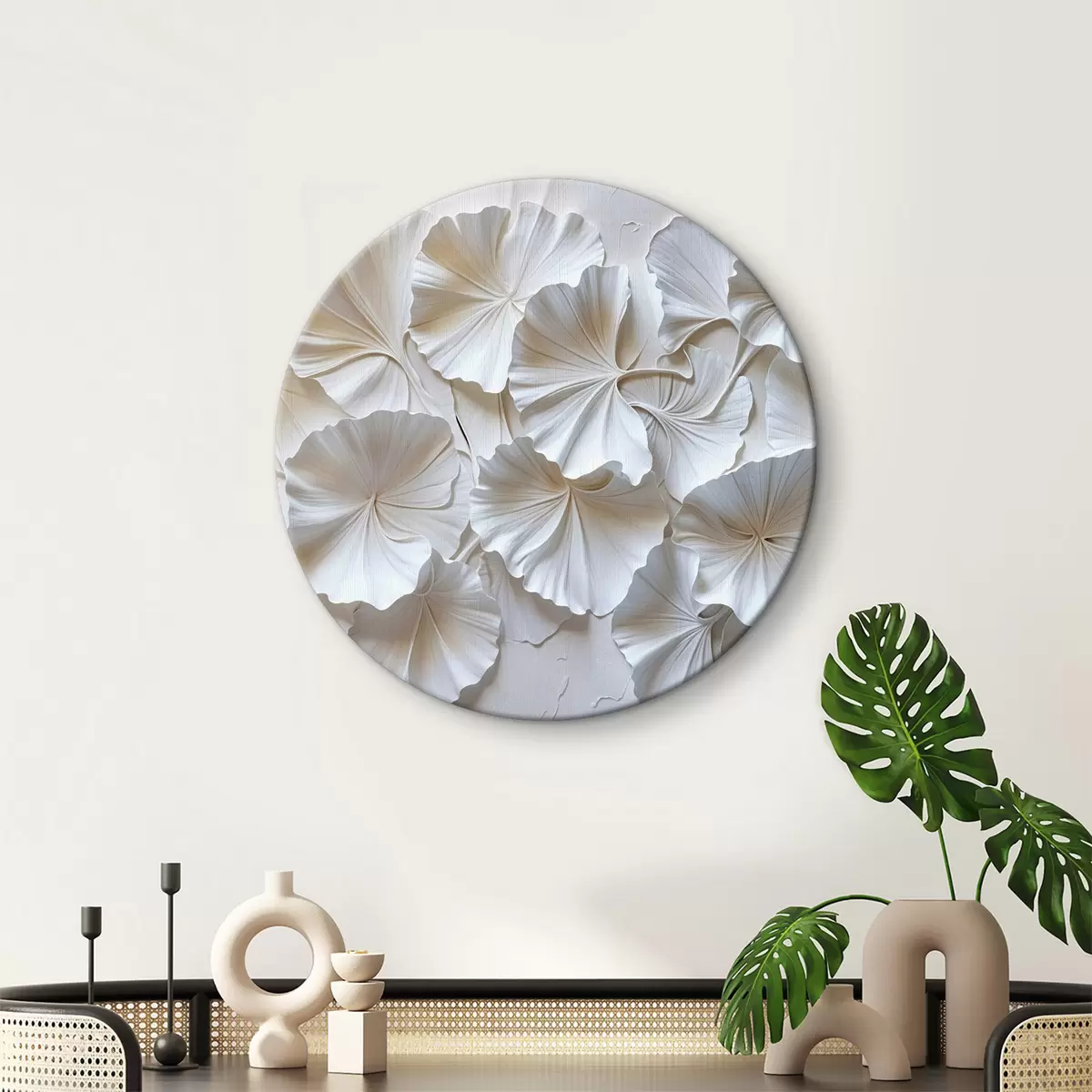 Picturi rotunde Flori albe delicate aranjate într-un model natural, organic, pe un fundal deschis Nr r39510
