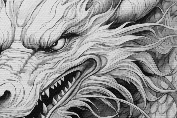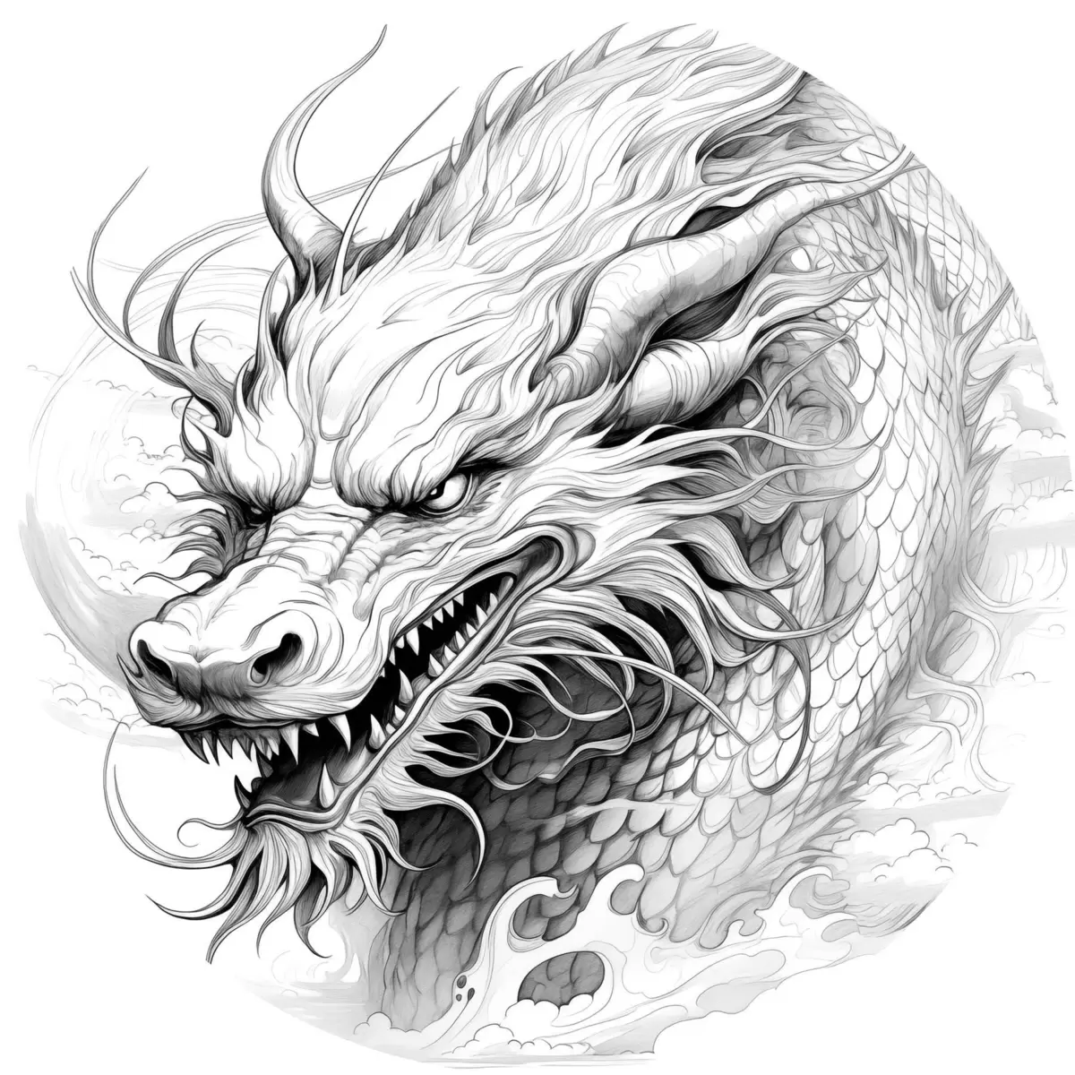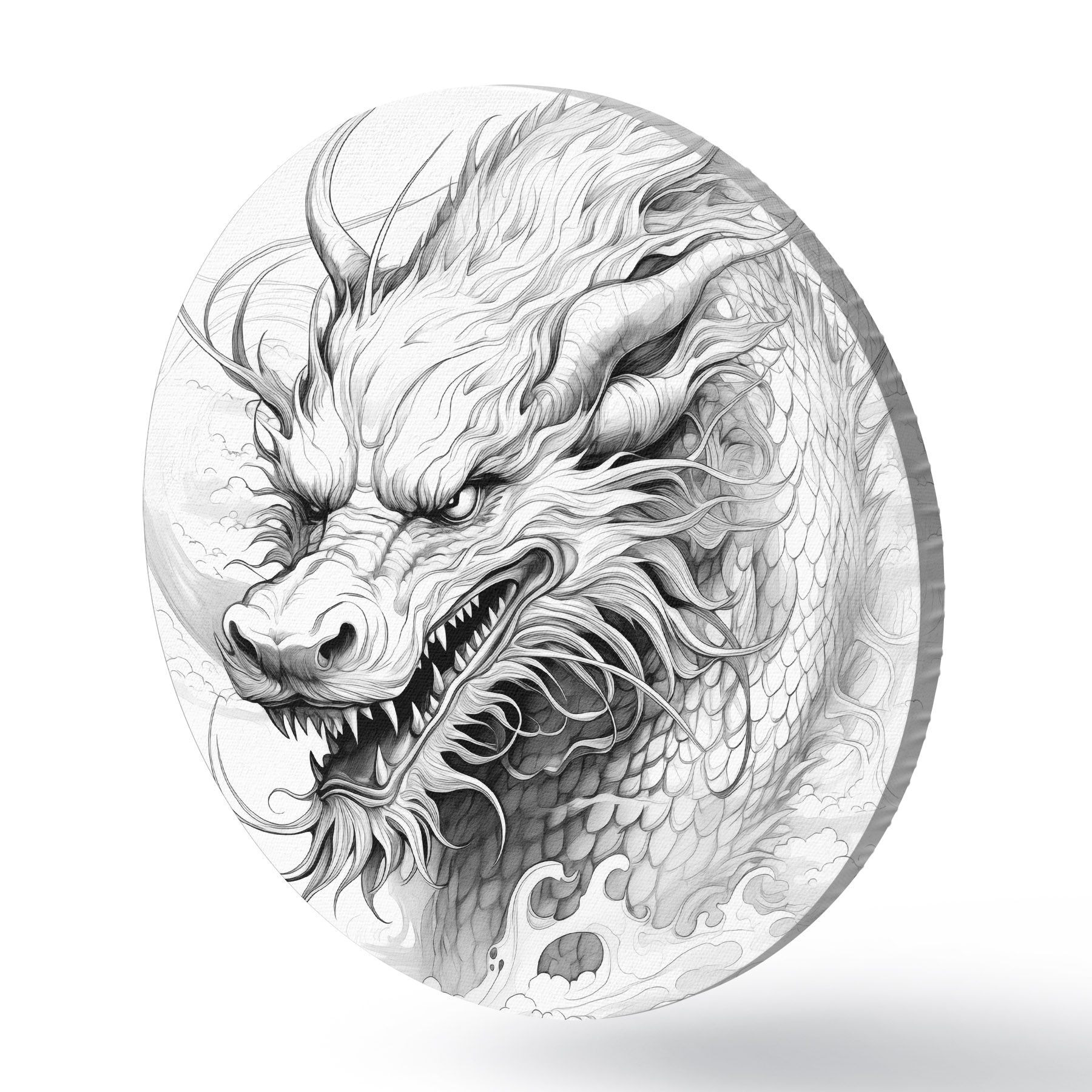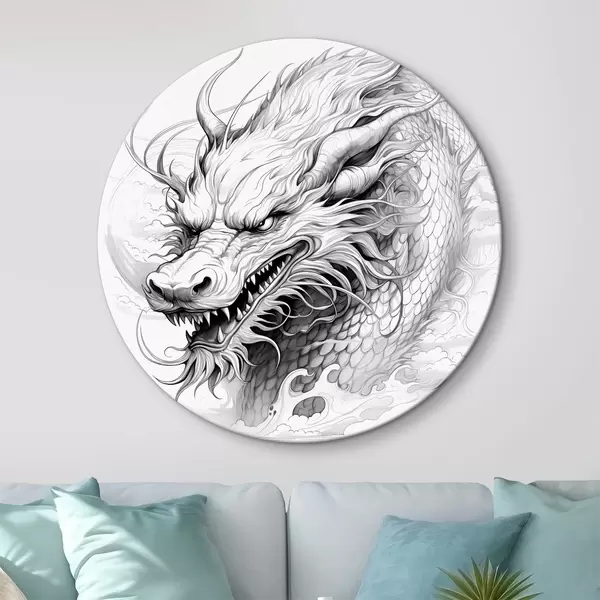 Picturi rotunde Stil chinezesc dragon linie de desen monocrom Nr r39563