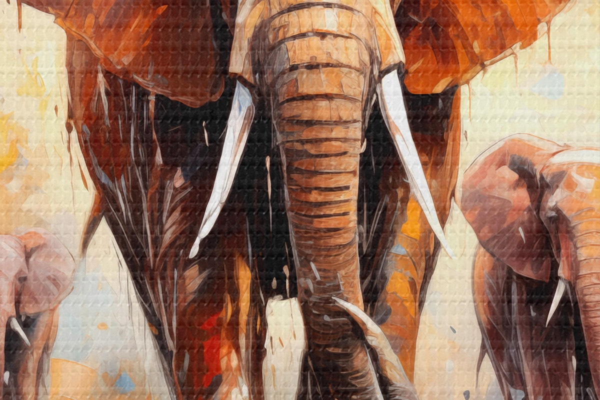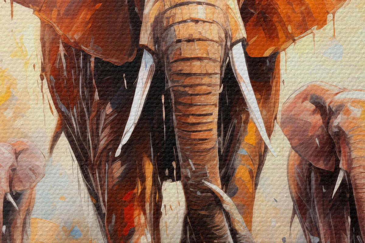 Picturi rotunde Un stol de elefanți printre savană, pictură în ulei, artă abstractă Nr r39573