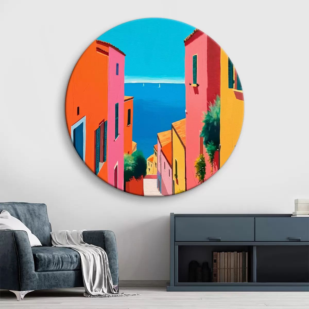 Picturi rotunde Vedere la mare și stradă luminoasă Nr r39579