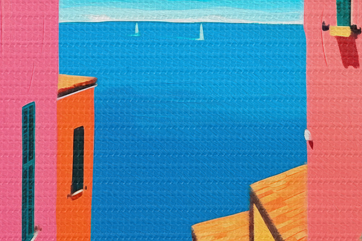 Picturi rotunde Vedere la mare și stradă luminoasă r39579
