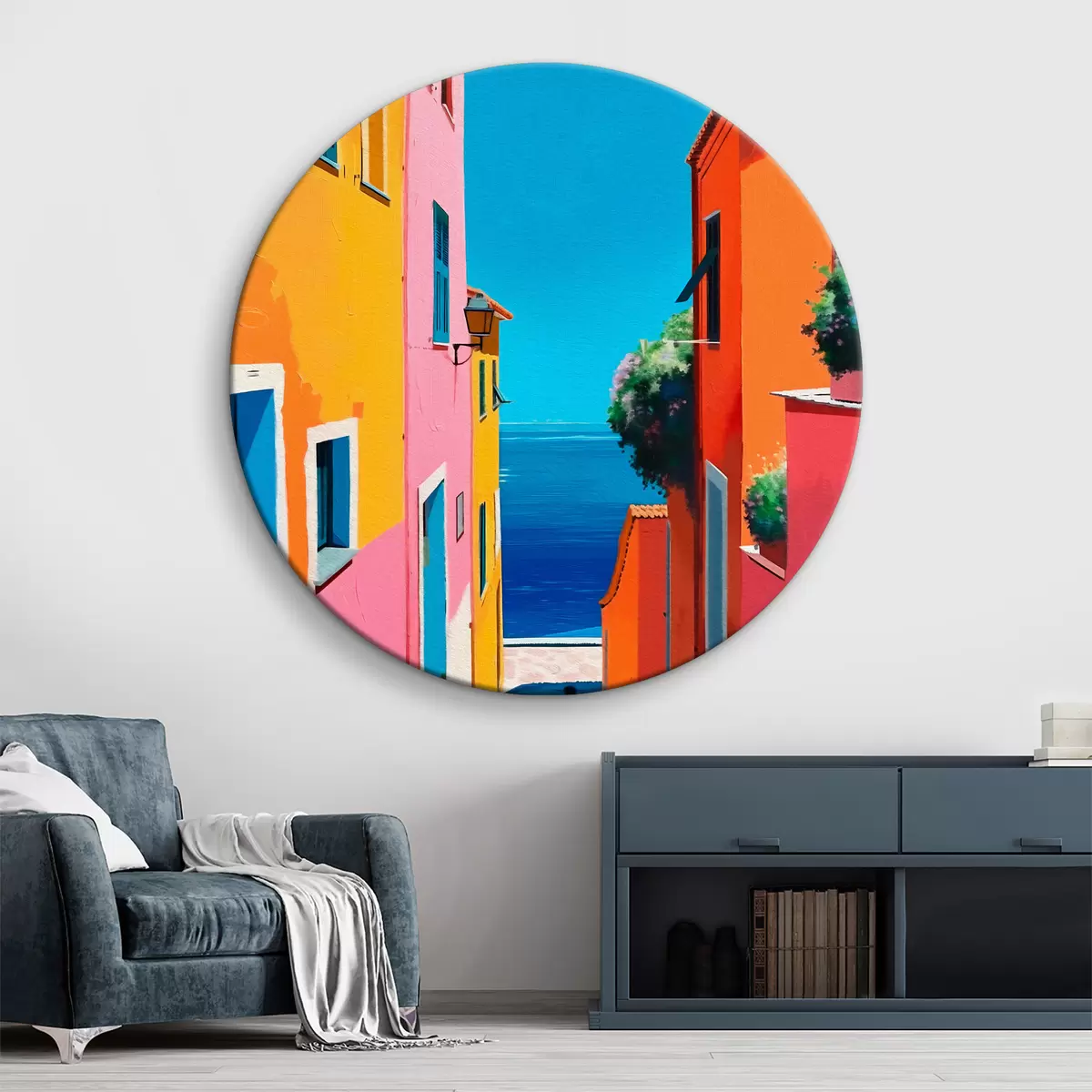 Picturi rotunde Vedere la mare și stradă luminoasă Nr r39582