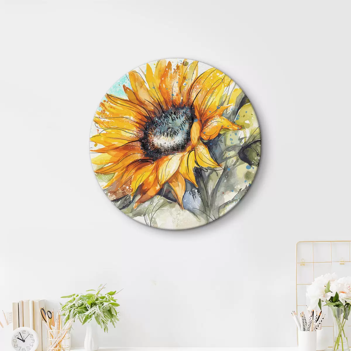 Picturi rotunde Floarea-soarelui acuarelă cu stropi de vopsea Nr r39583