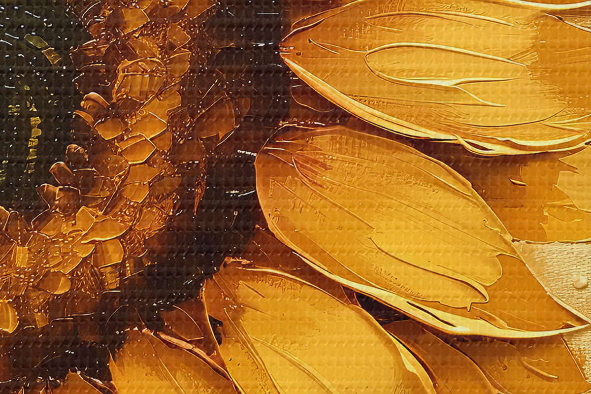 Țesătura fină a firelor de pe această pânză seamănă cu suprafața pânzelor artiștilor profesioniști.