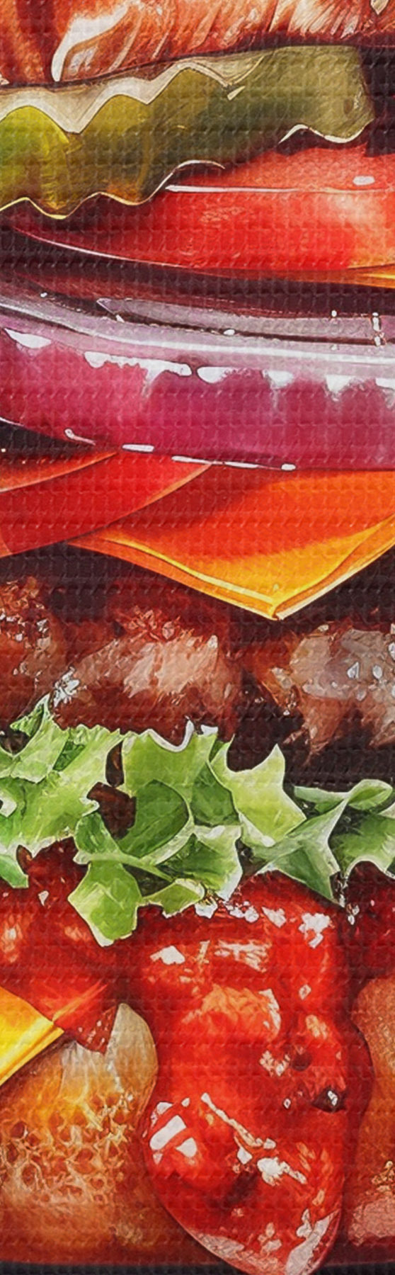 Picturi rotunde Burger gustos cu carne, floral, acuarelă, artă alimentară Nr r39699