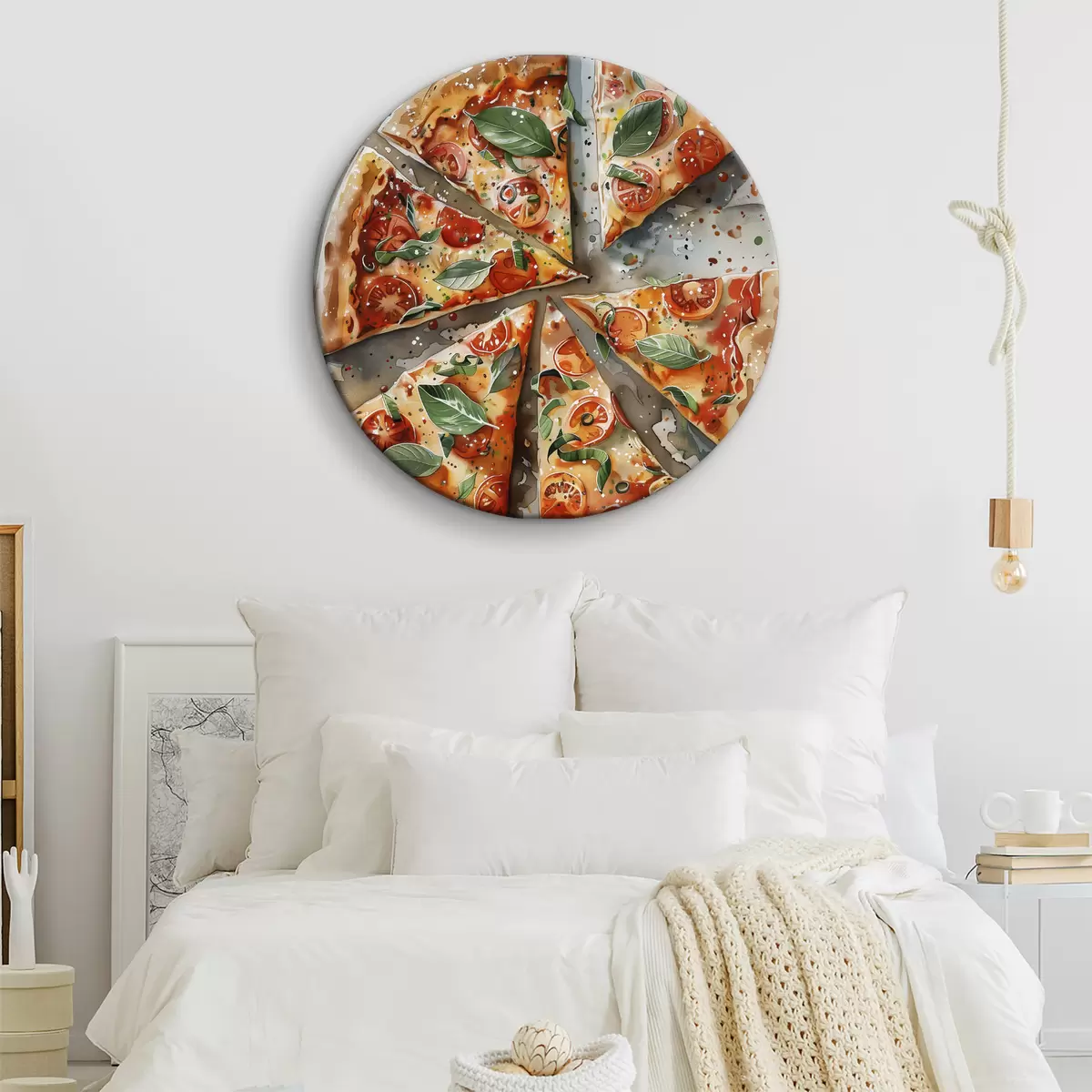 Picturi rotunde Delicioasă pizza italiană, acuarelă artă alimentară, margarita, roșii Nr r39703