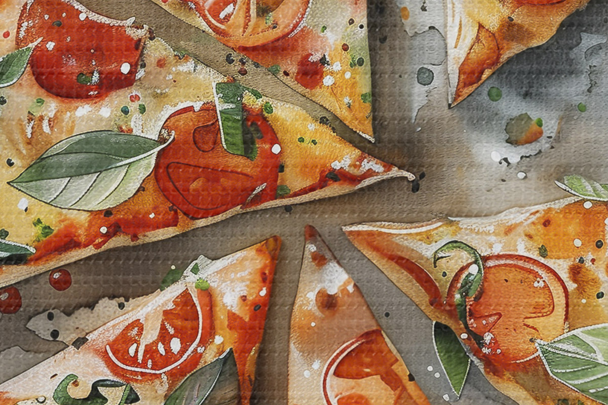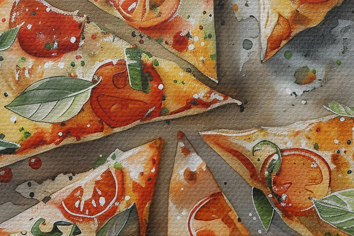 Picturi rotunde Delicioasă pizza italiană, acuarelă artă alimentară, margarita, roșii r39703