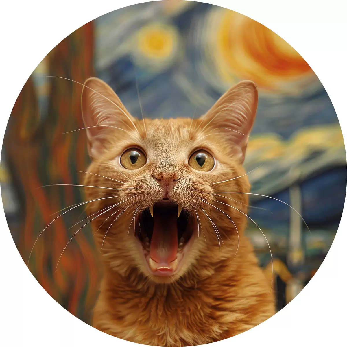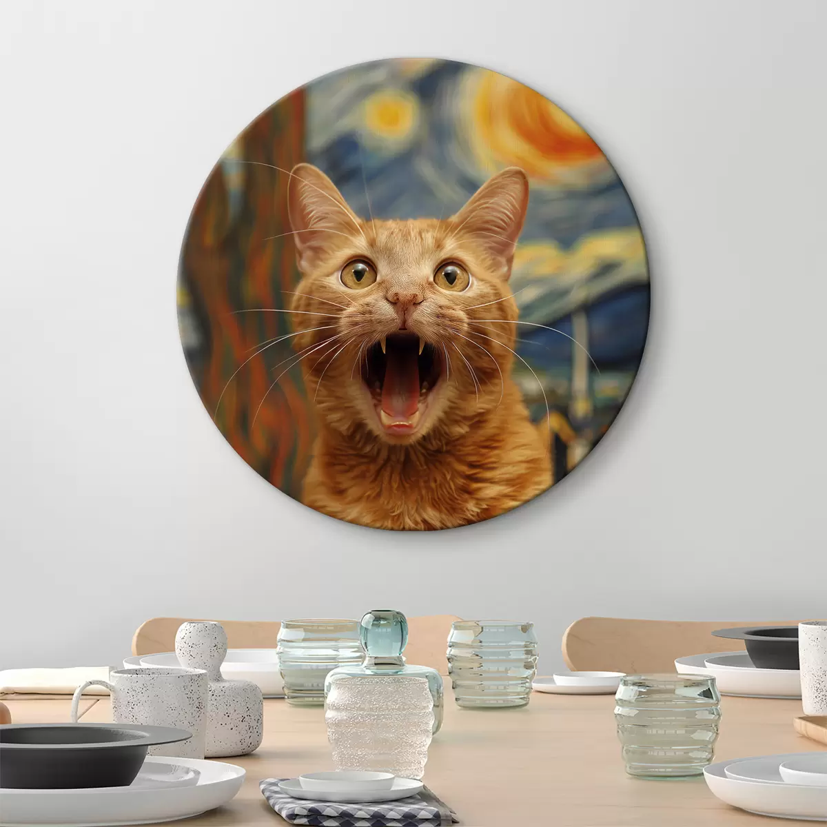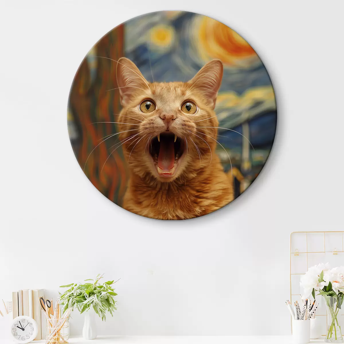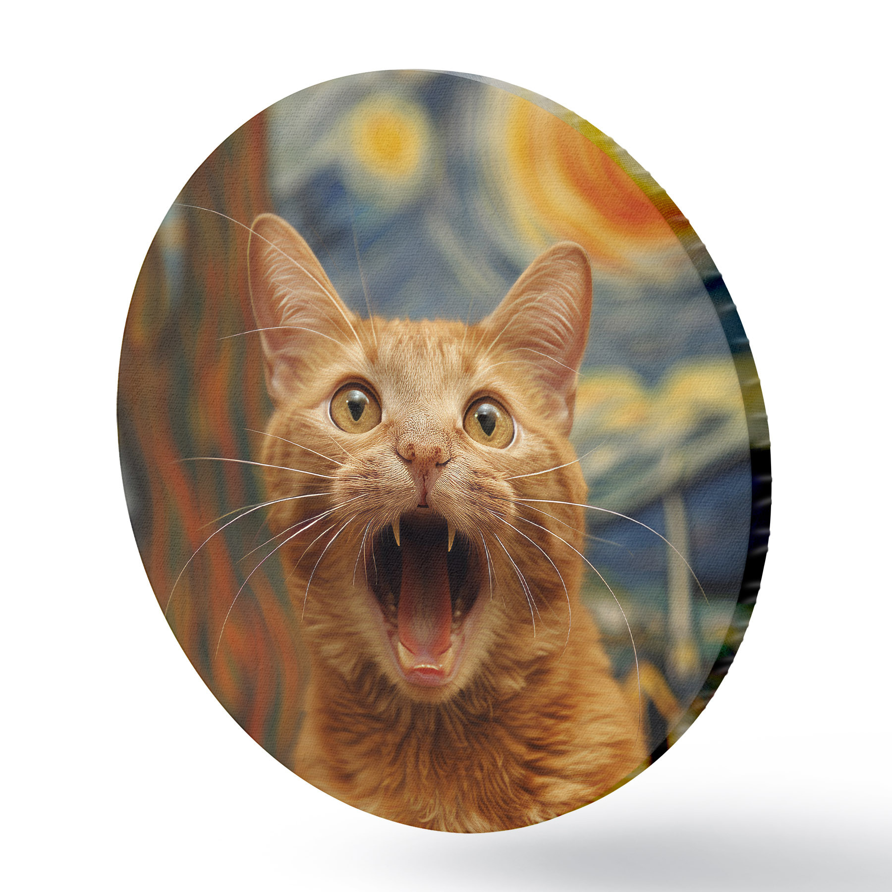 Picturi rotunde Pictură în stil Van Gogh a "Țipătului" cu o pisică Nr r39724