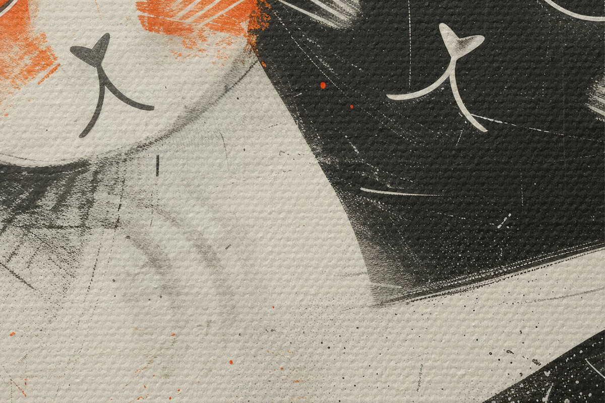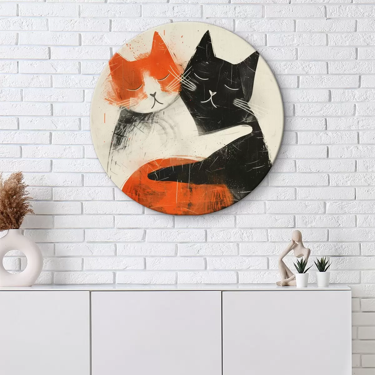 Picturi rotunde Minimalist cerneală ilustrare de două pisici drăguț Nr r39725