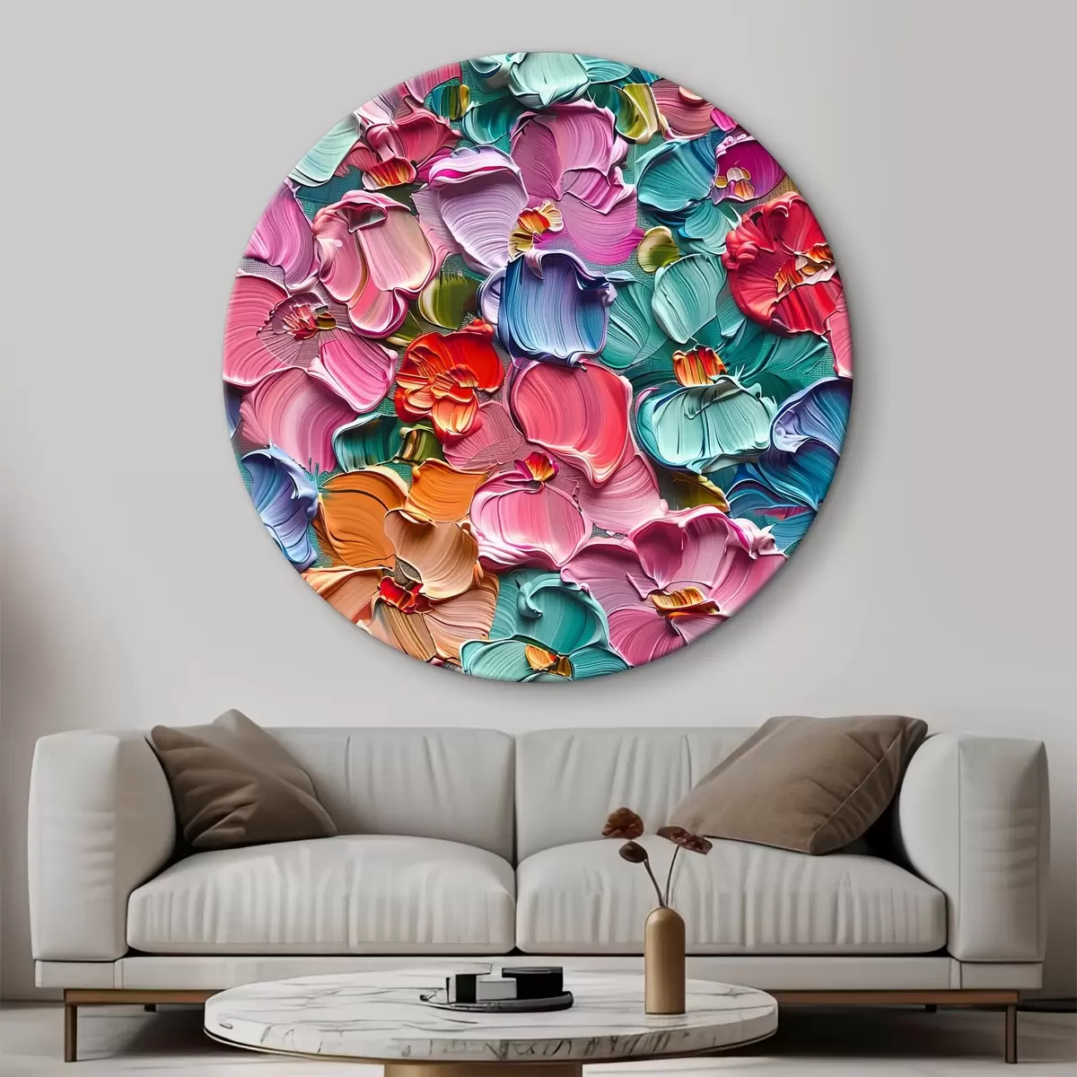 Picturi rotunde Compoziție acrilică florală cu tușe de pensulă