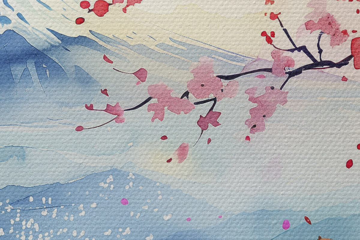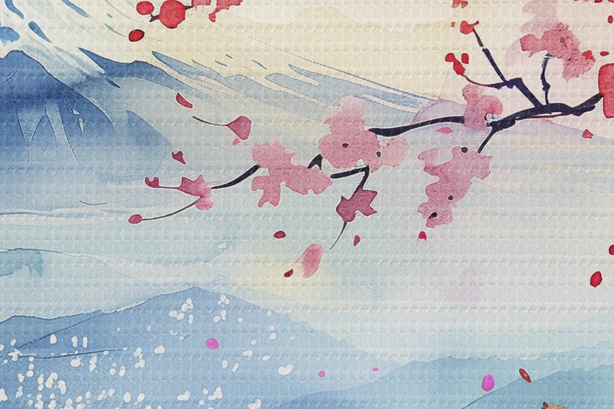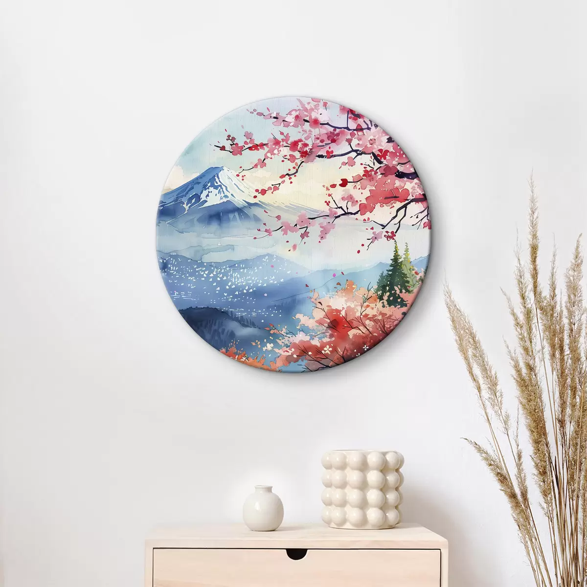 Picturi rotunde Muntele Fuji peisaj, natura orientală, cireșe, apus de soare r39775