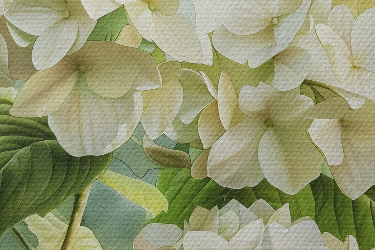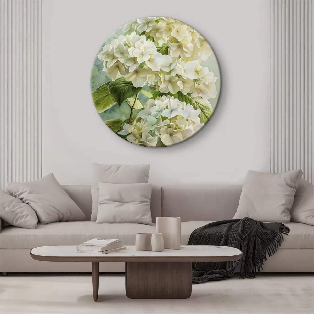 Picturi rotunde Hydrangea floare, florale, culori naturale moi, desen acuarelă Nr r39782