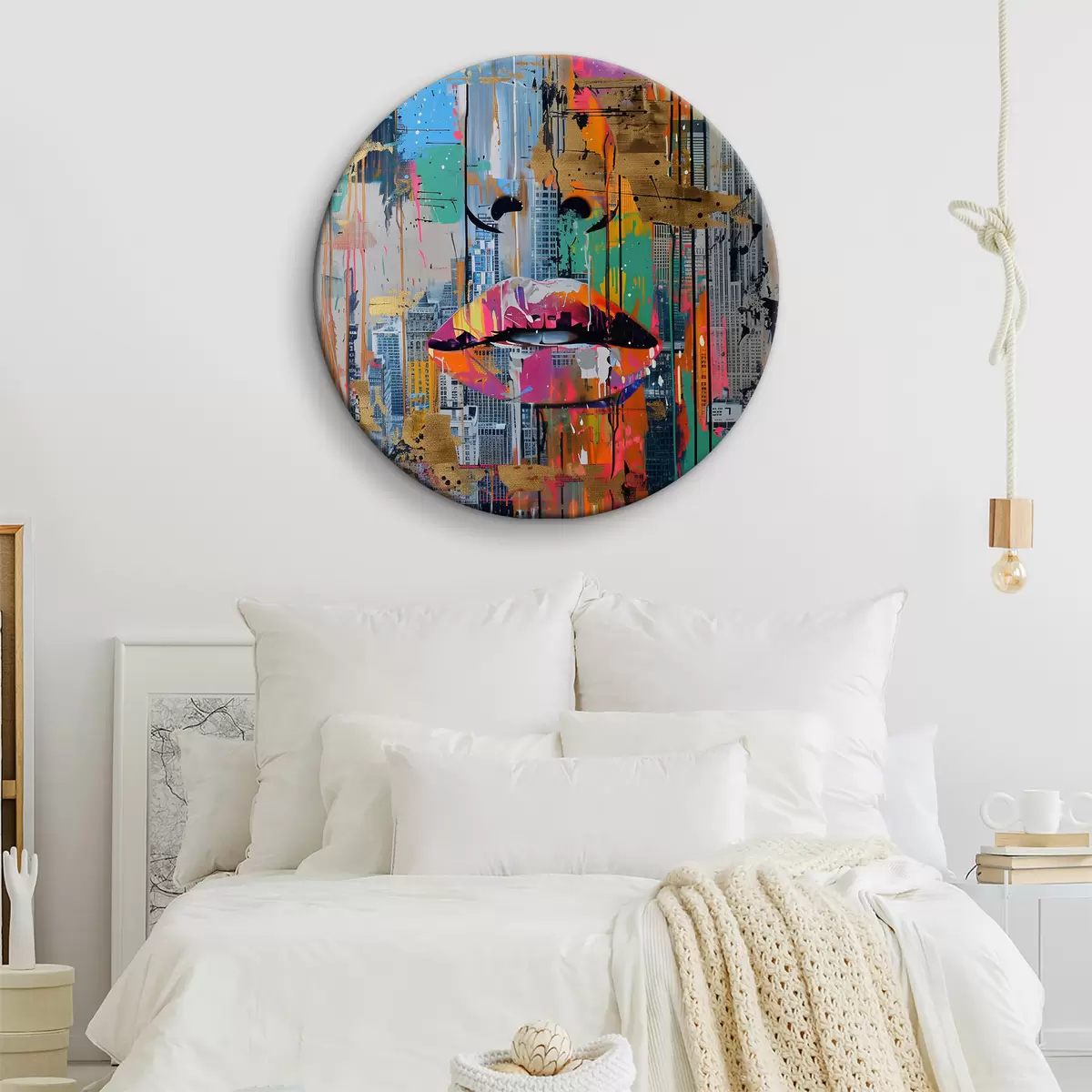 Picturi rotunde Ochi albaștri și vedere la oraș r39800