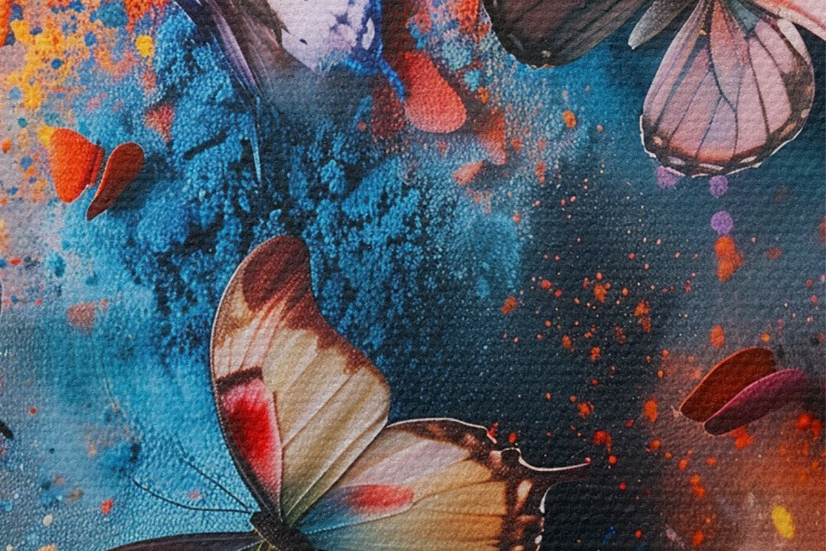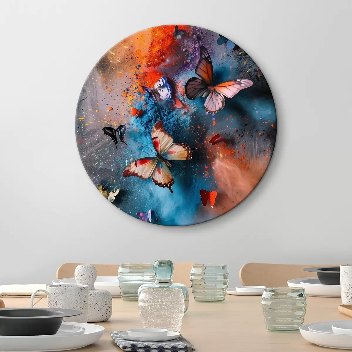 Picturi rotunde Fluturi pe un fundal de stropi de vopsea r39803