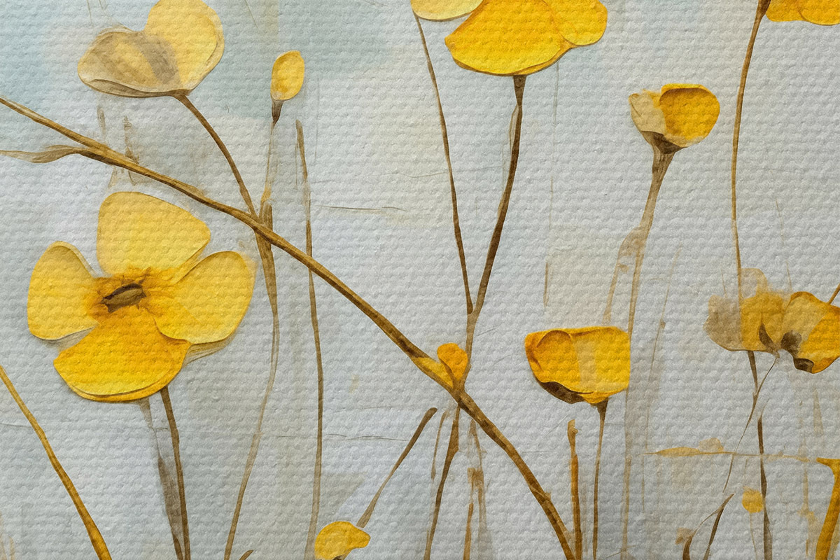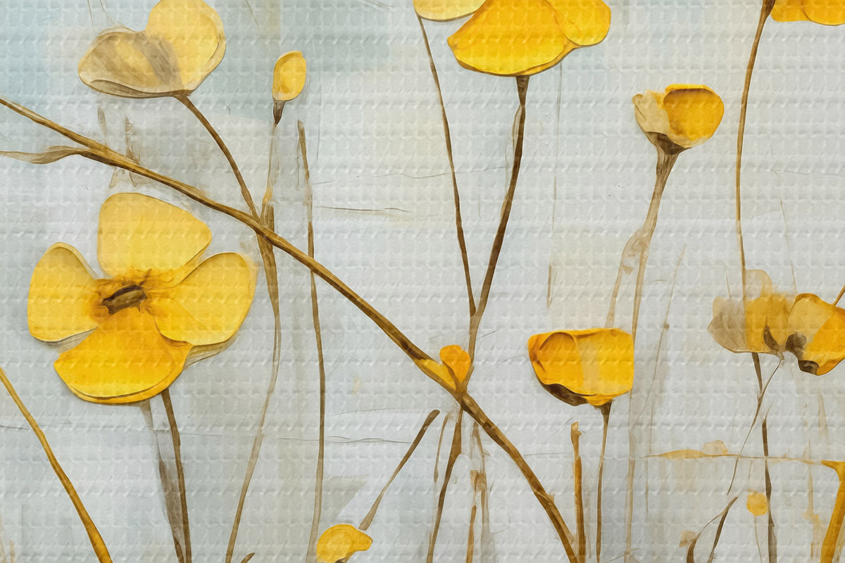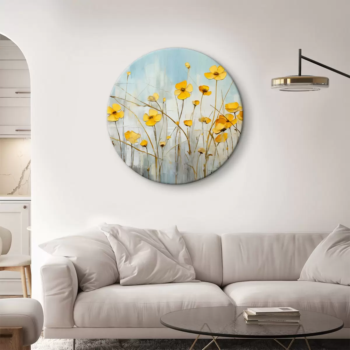 Picturi rotunde Flori mici galbene pe o tulpină lungă pictură în ulei r39823