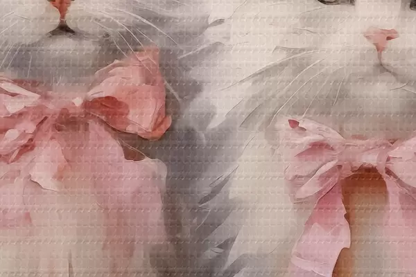 Picturi rotunde Pisici albe cu arcuri roz pictură în ulei r39826