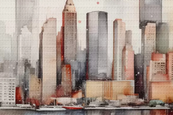 Picturi rotunde New York City vedere, clădire siluete, acuarelă Nr r39828