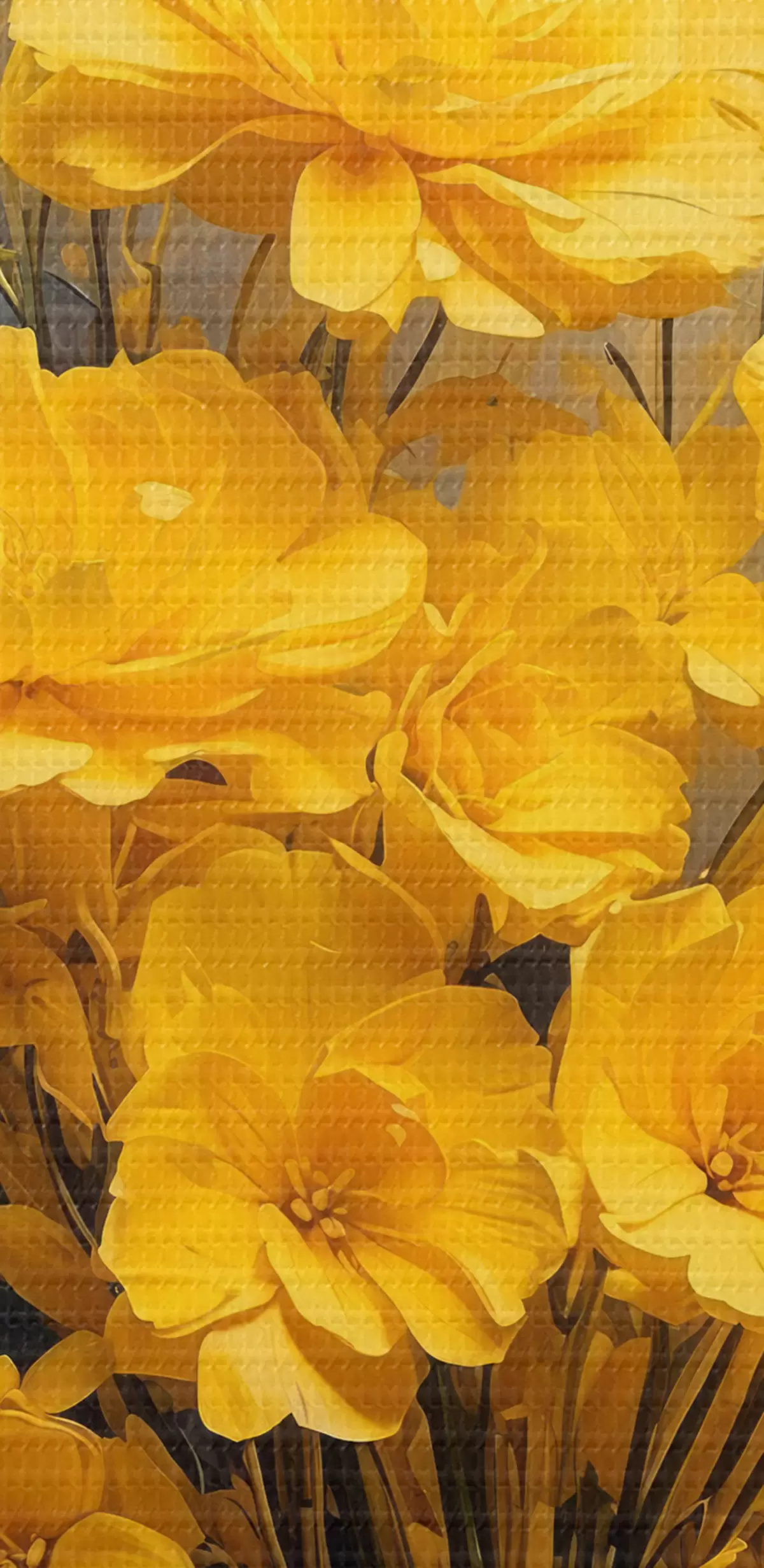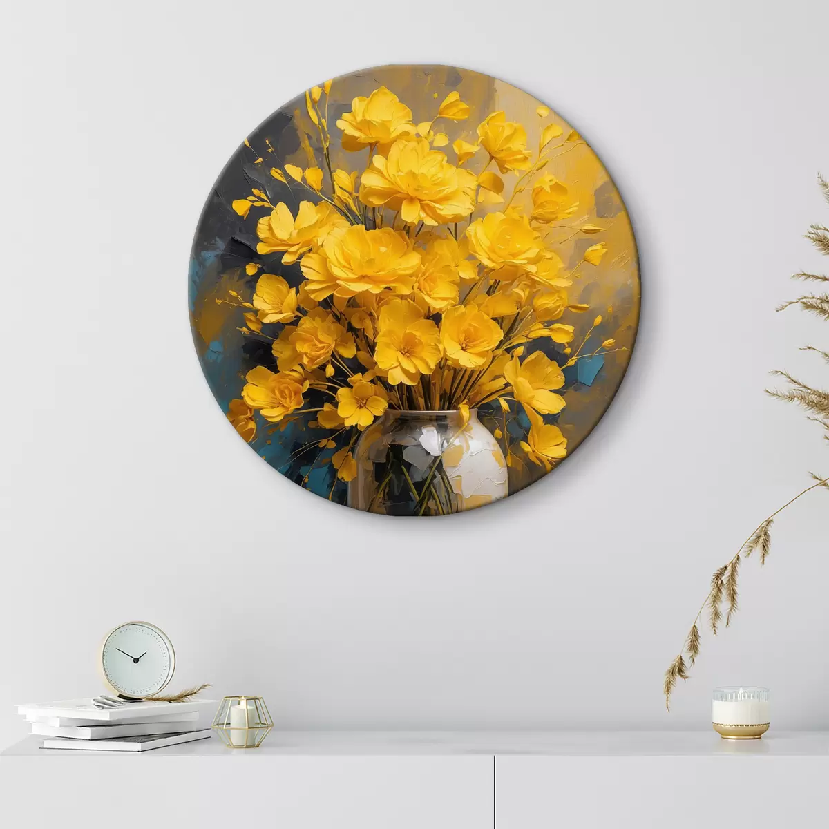Picturi rotunde Flori galbene în vază pe fundal acrilic multicolor Nr r39854