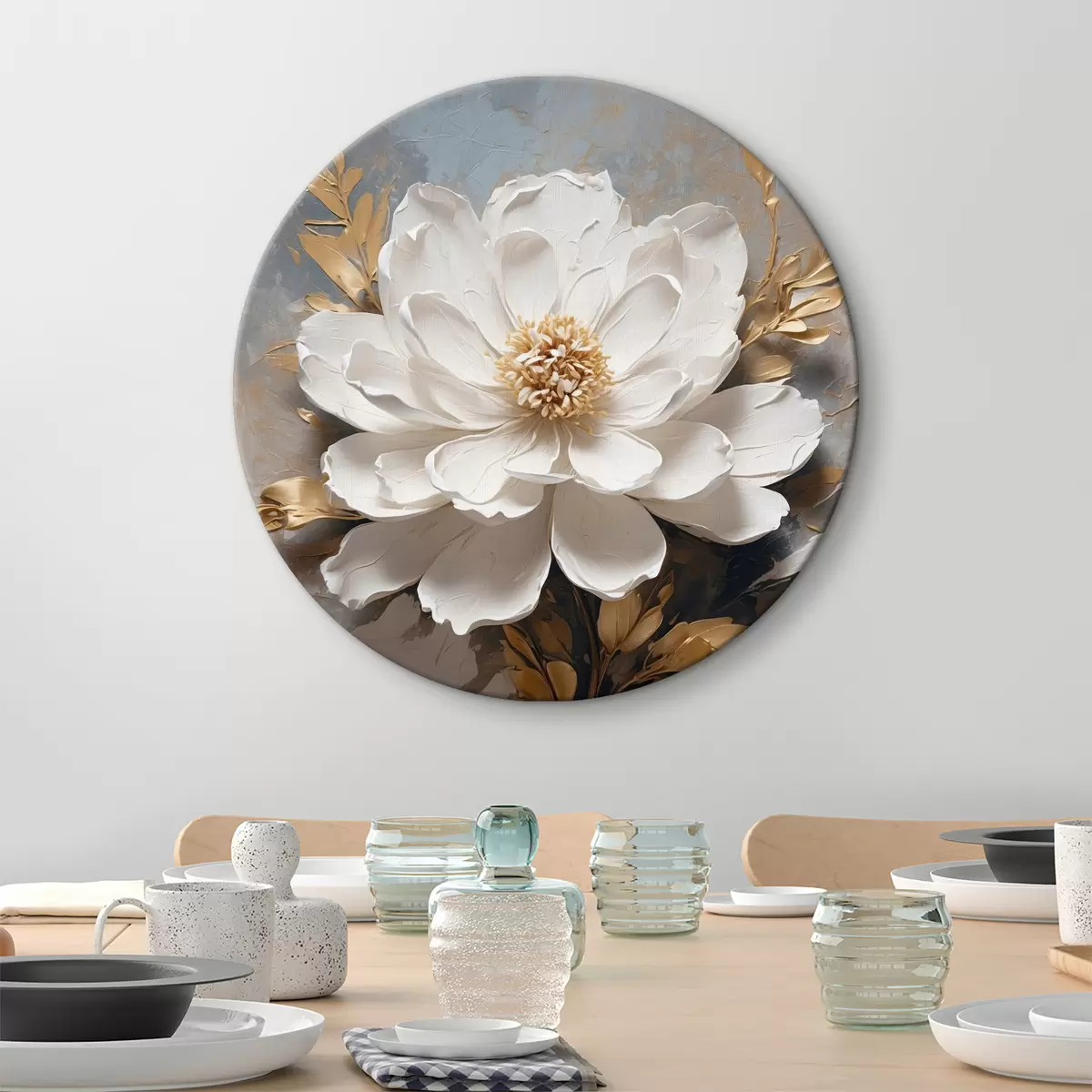 Picturi rotunde Floare albă cu tulpini pe fundal abstract Nr r39865