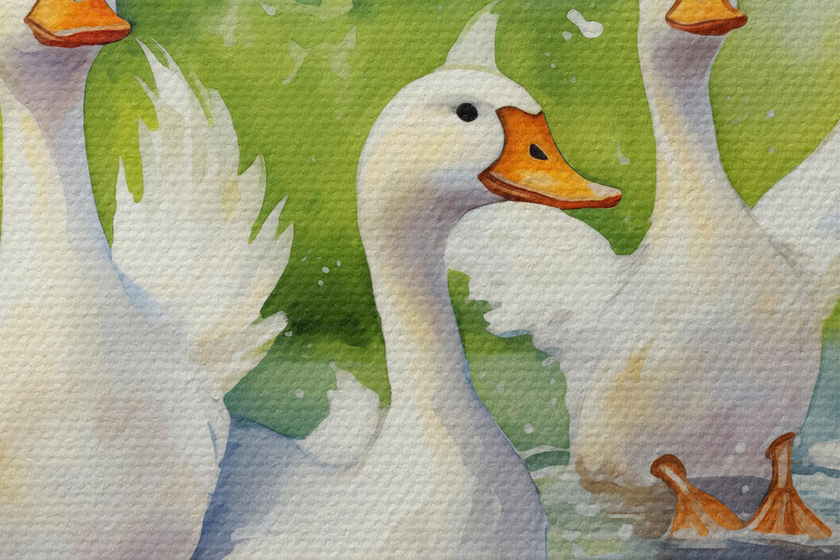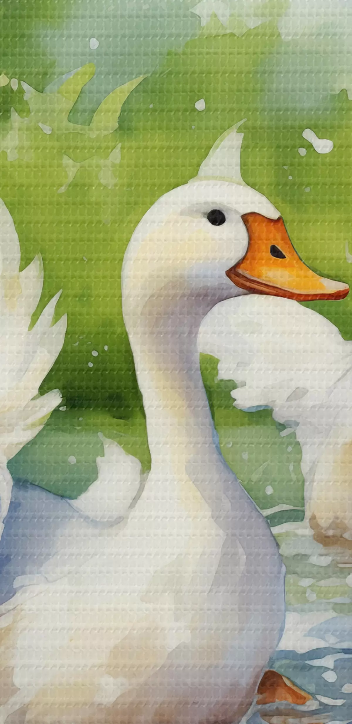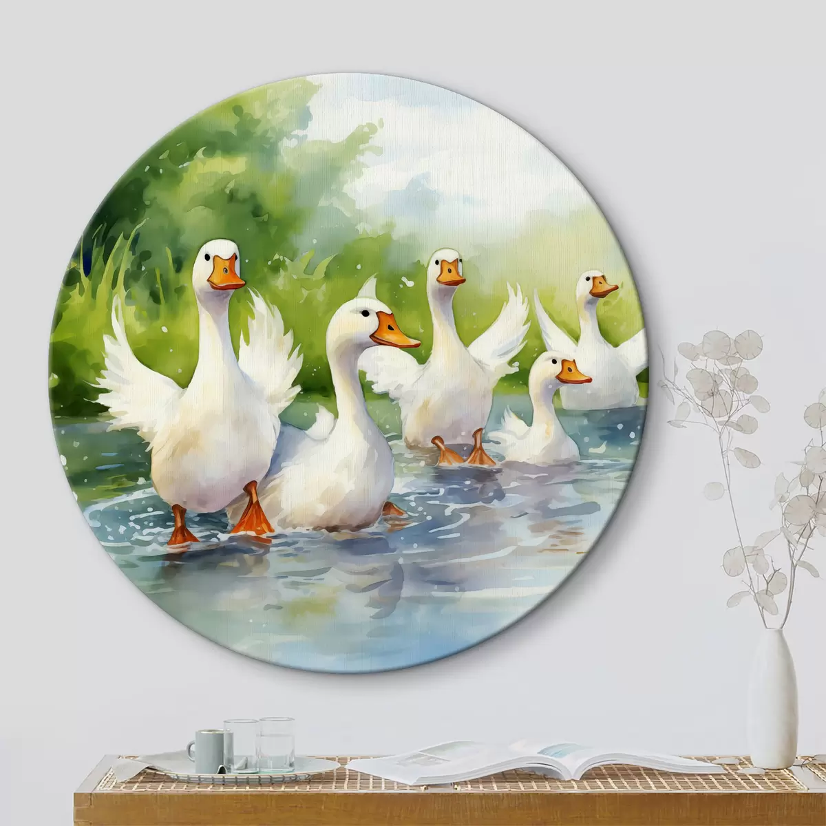 Picturi rotunde Gâște albe scăldat într-un iaz pictura acuarelă Nr r39939