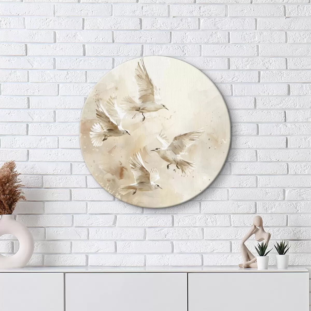 Picturi rotunde Păsări zburătoare acuarelă, culori pastelate moi, abstracție Nr r39973