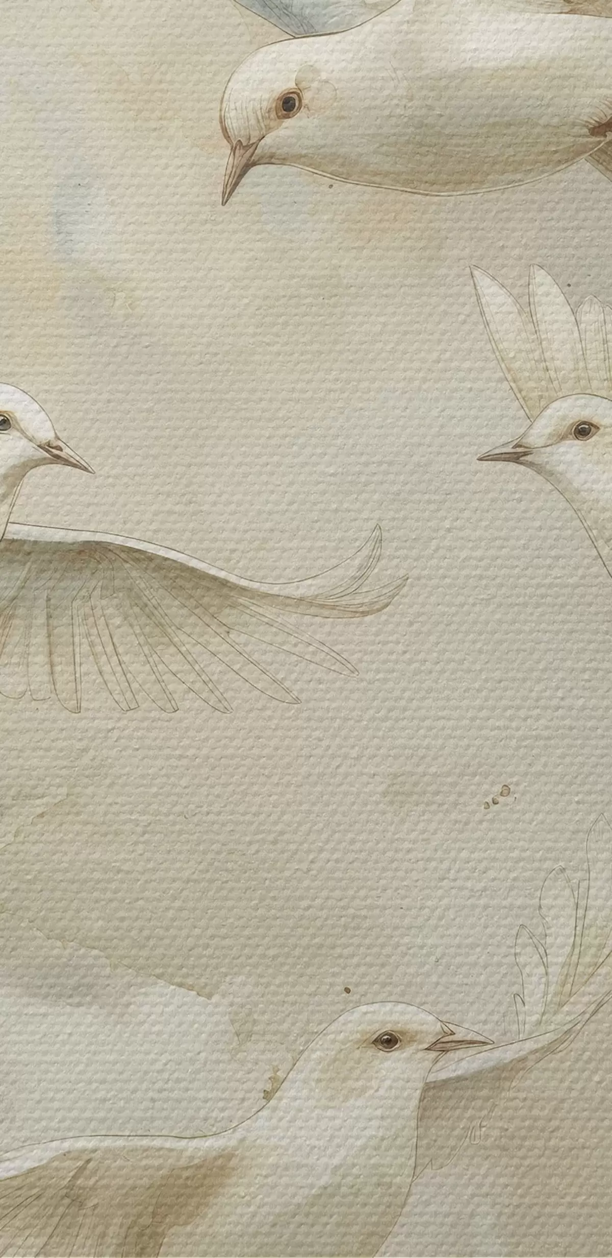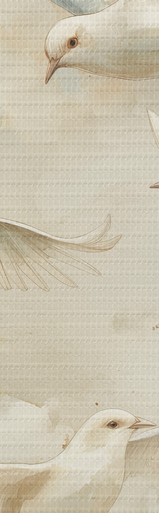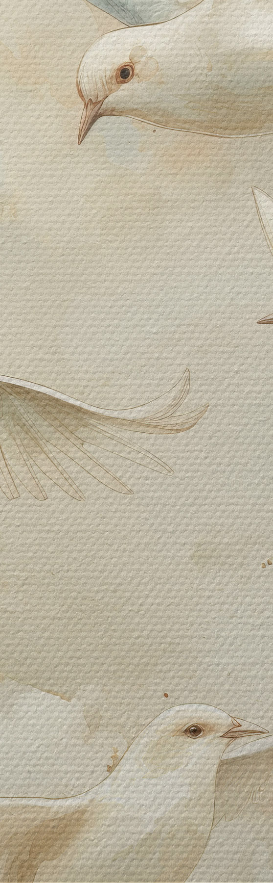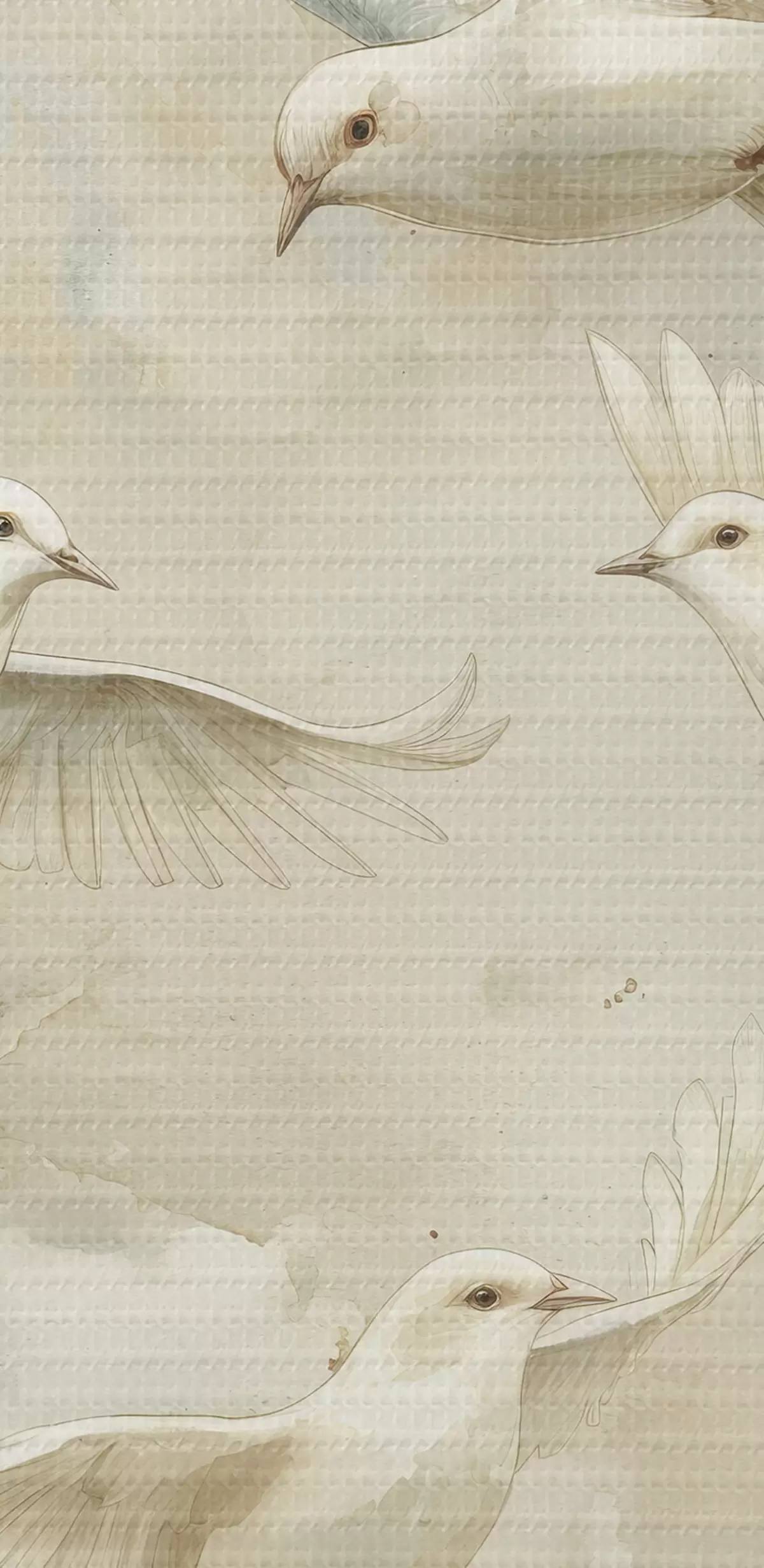 Picturi rotunde Acuarelă păsări zburătoare, culori moi bej și alb, porumbei r39976