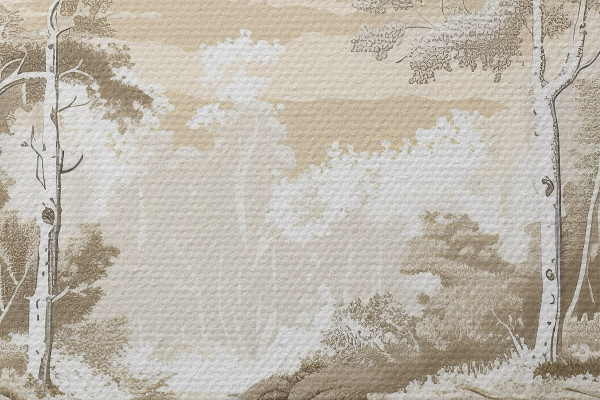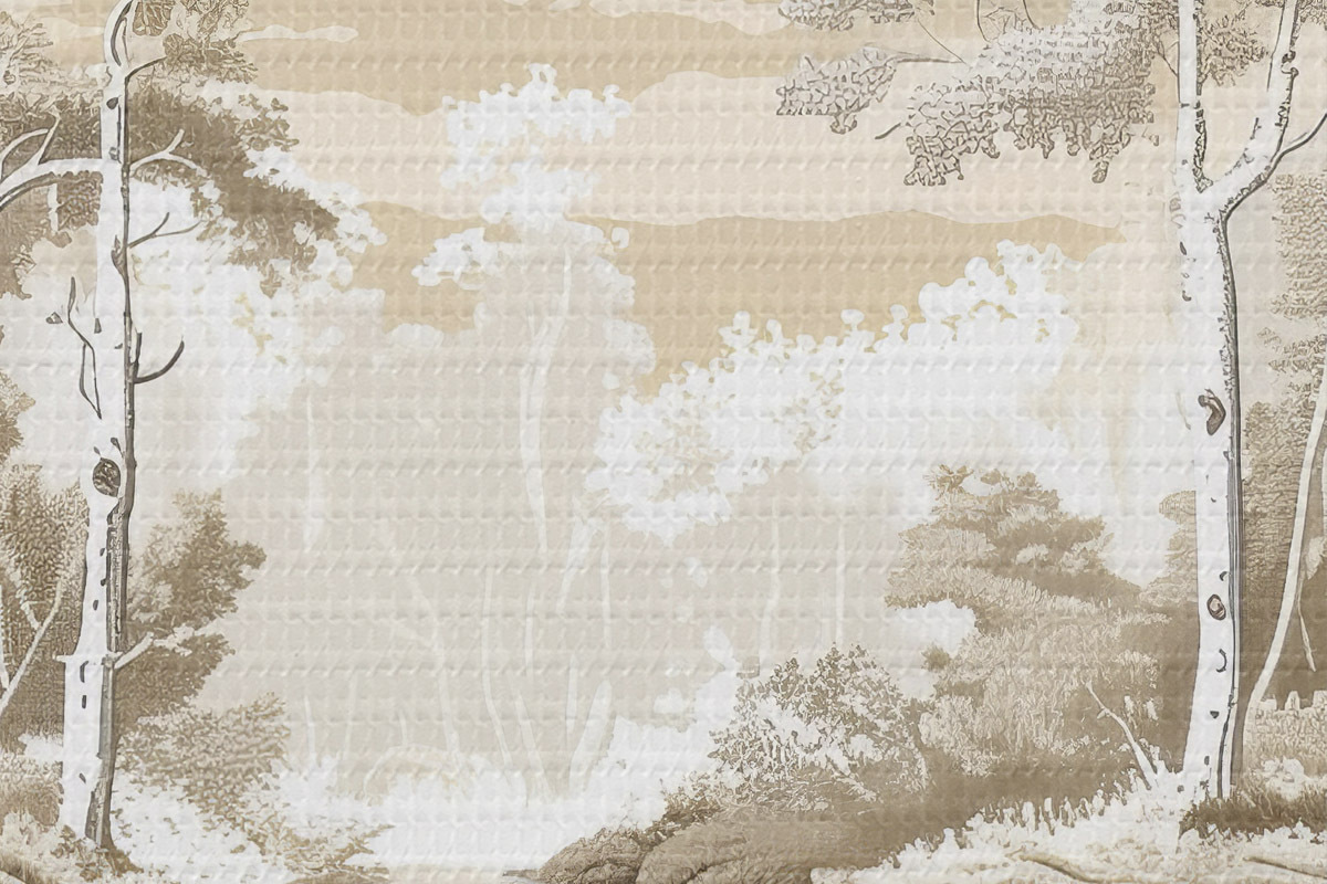 Picturi rotunde Peisaj forestier frumos, culori pastelate moi, bej și alb r39978