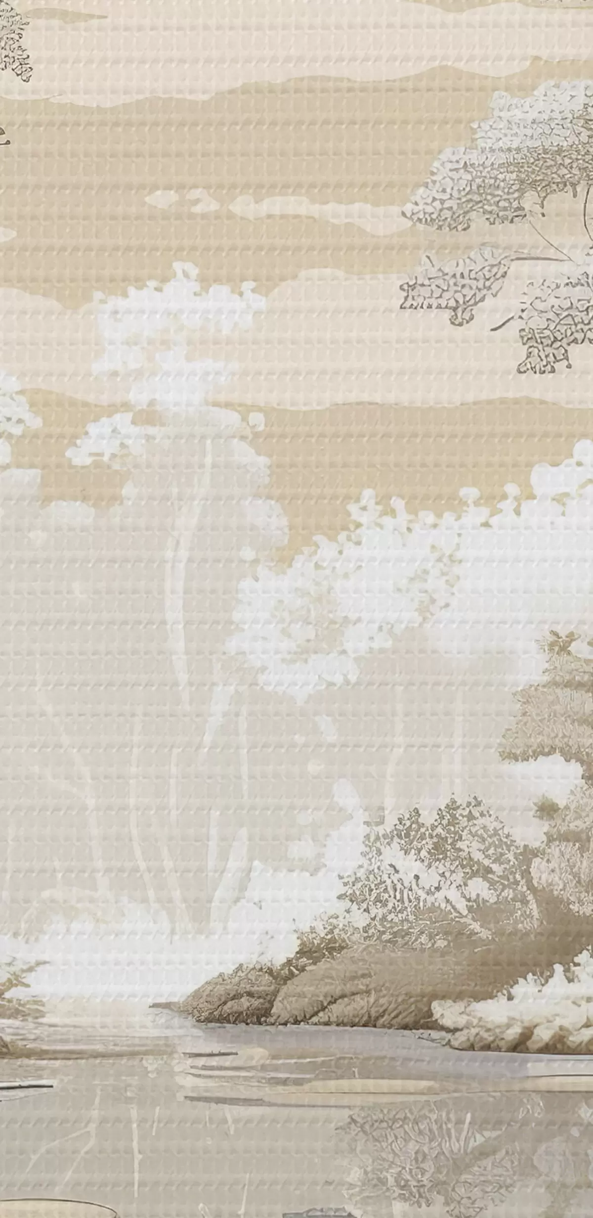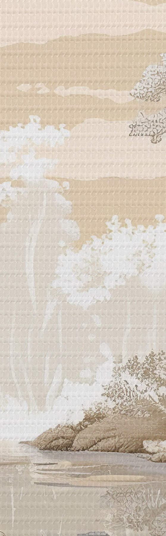 Picturi rotunde Peisaj forestier frumos, culori pastelate moi, bej și alb Nr r39978